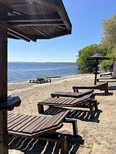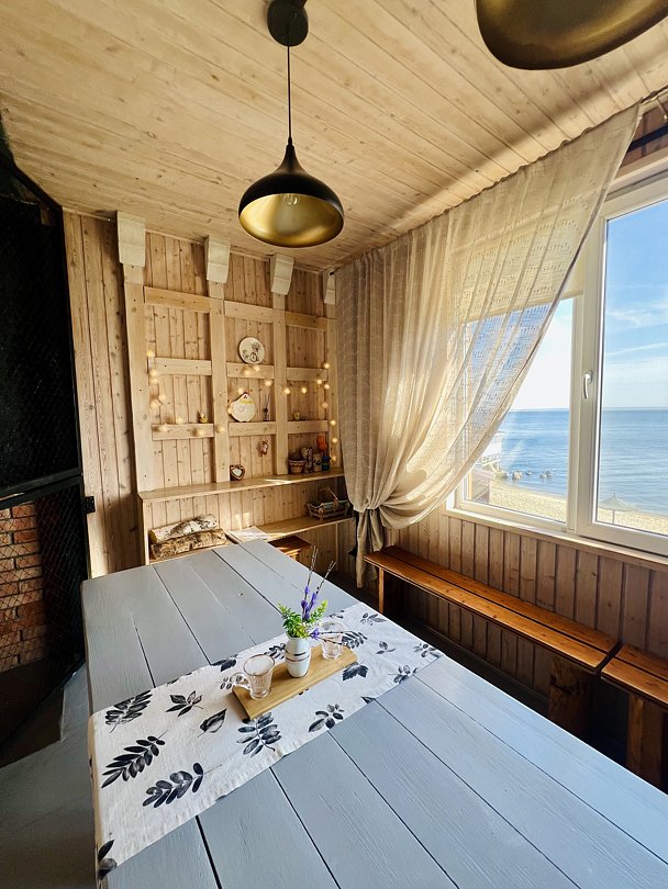 Дом-шале на 4 спальных места и до 8 человек дневного пребывания на турбазе Адмирал. 1 береговая линия.