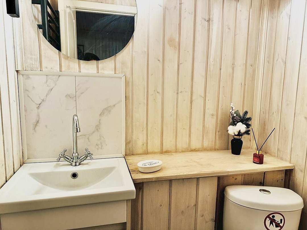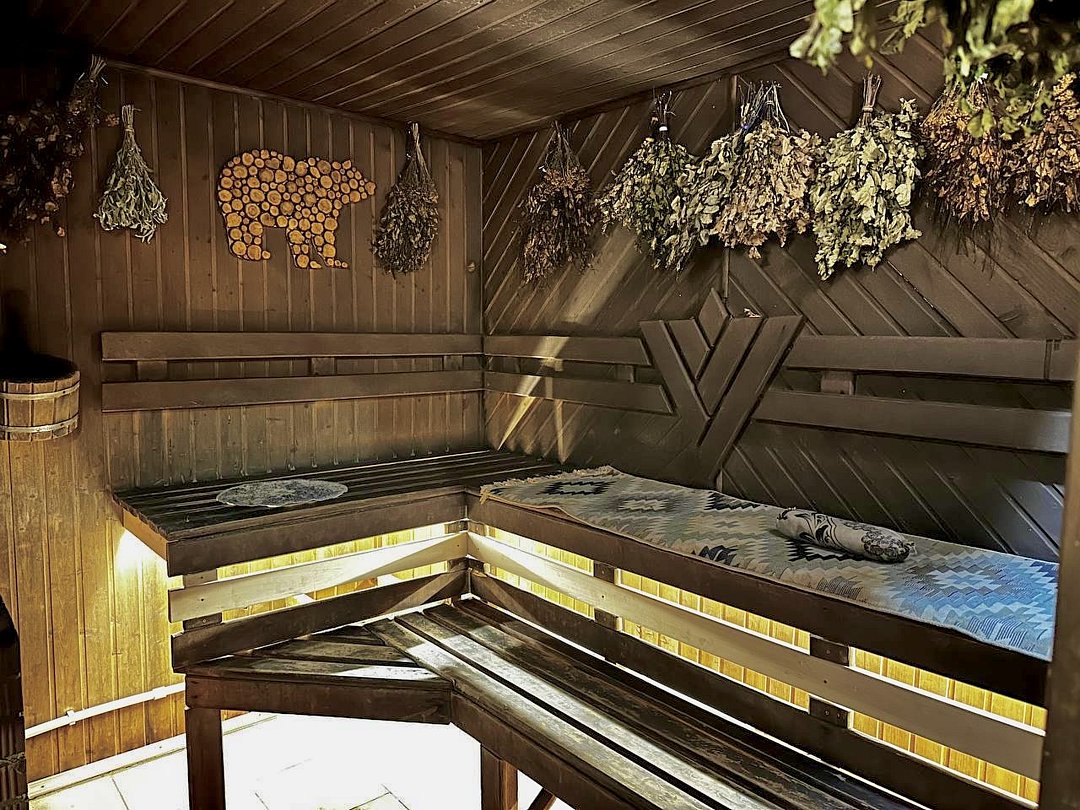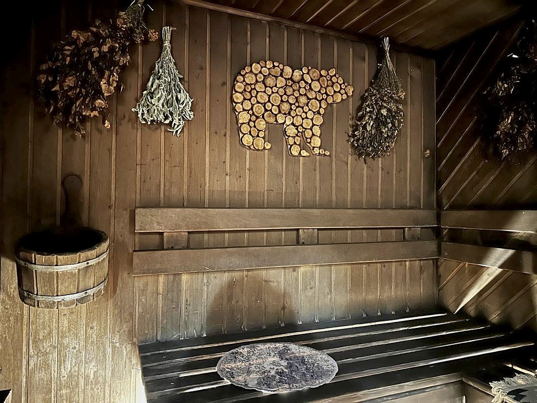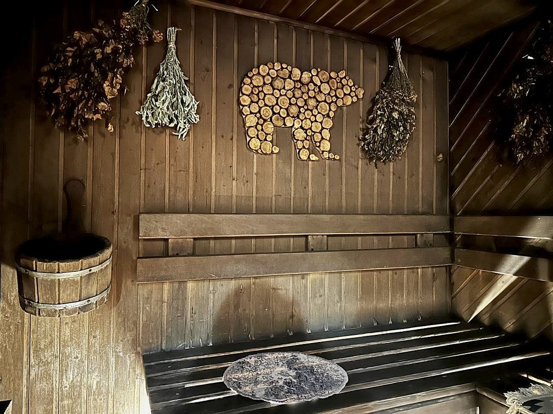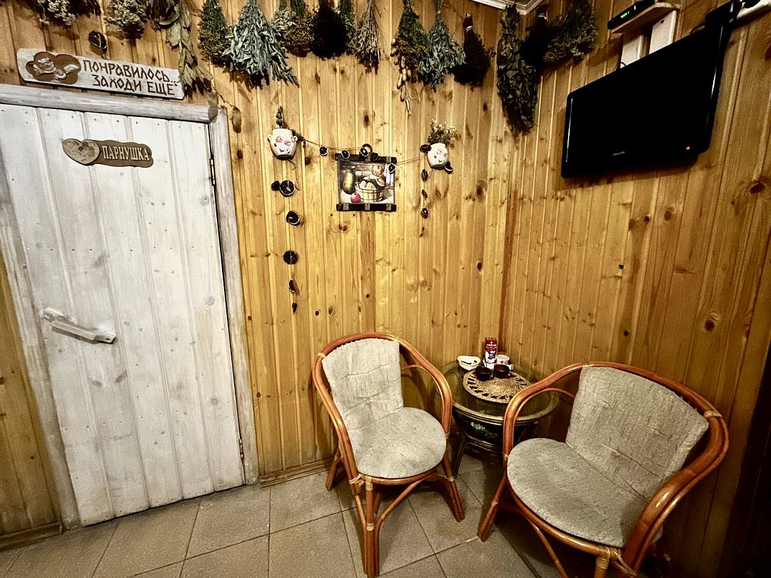 Рядом настоящая русская баня на дровах и кедровый банный чан с цветами и травами за дополнительную плату.