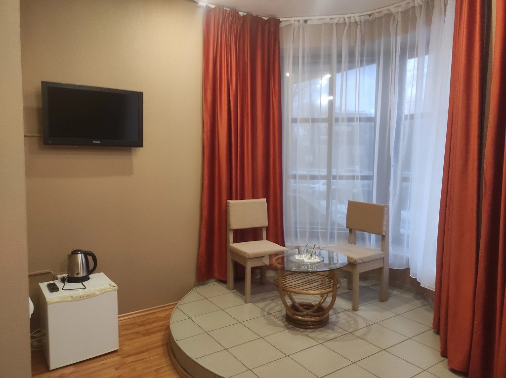 В номере гостей ждут телевизор и халат. Перечисленные услуги есть не во всех номерах.