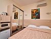 В номере - мебель (двуспальная кровать, две тумбы, угловая столешница, пуфик) , душ/туалет/фен, полотенца (6 шт.), кабельное телевидение, LCD-телевизор, кондиционер, бесплатный выход в Интернет через Wi-Fi. Уборка номера раз в три дня, смена белья один раз в 5 дней.Услуги и удобства