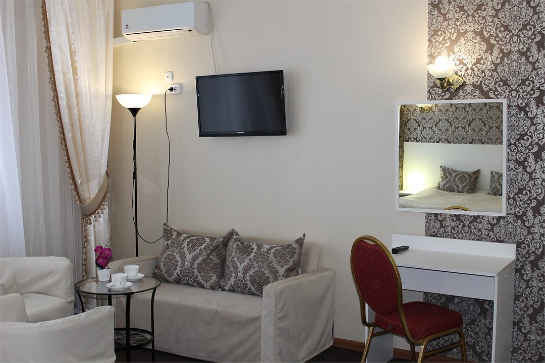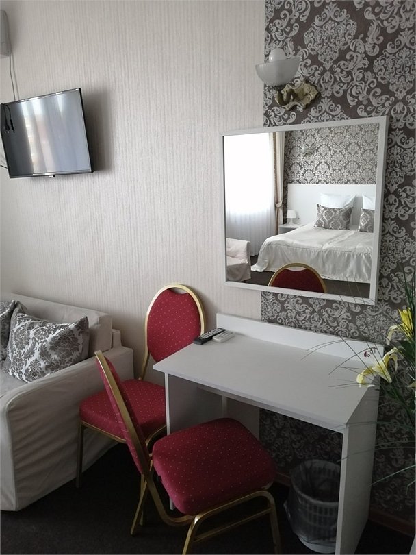 В номере: телевизор, холодильник, шкаф для одежды, 2 кровати, диван, прикроватные тумбы, душ, туалет.Услуги и удобства