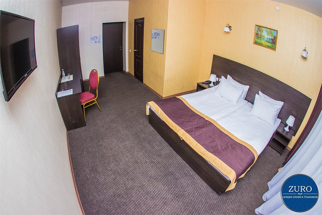 Для тех кто ценит простоту и комфорт. Комфортный номер площадью 23 кв.м. с одной большой двухспальной кроватью. В каждом номере есть рабочая зона с письменным столом, телефон, телевизор, холодильник, душ.Услуги и удобства