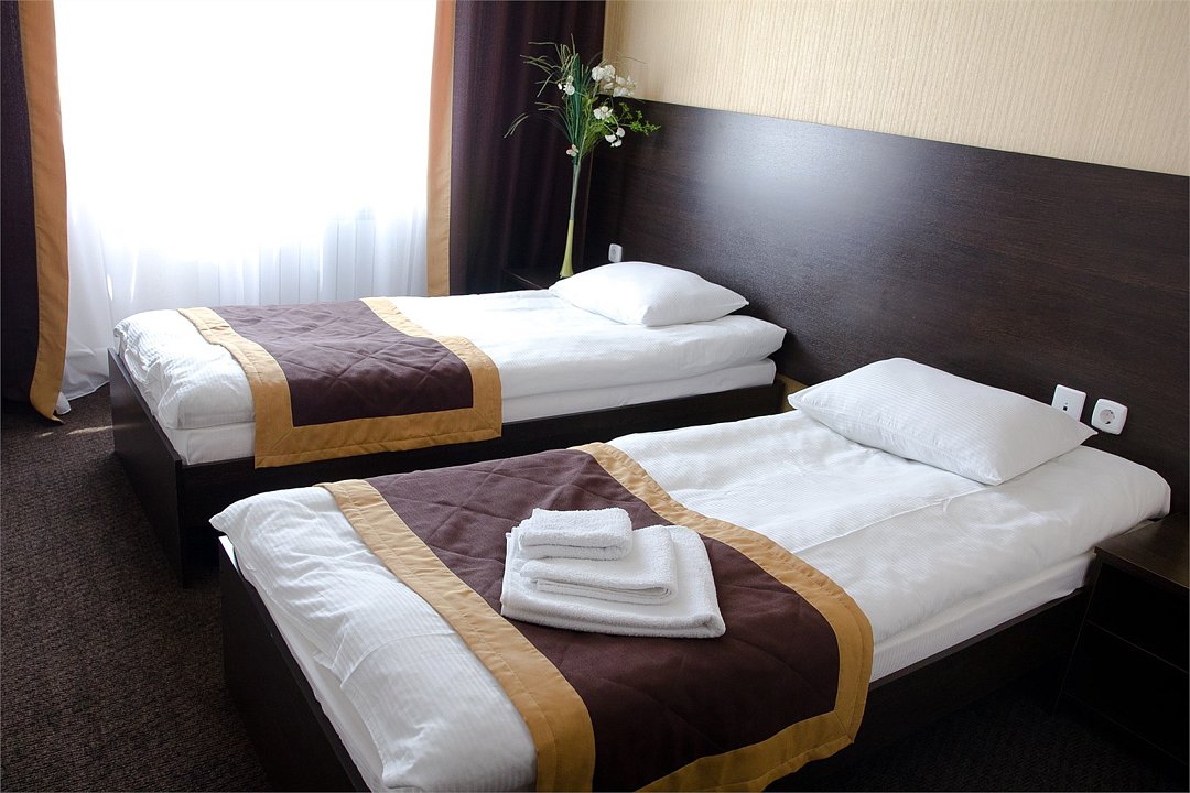 В номере: Функциональный номер с двумя односпальными кроватями.Рабочая зона с письменным столом, кабельное телевидение, душевая комната - необходимые вещи, которые сделают Ваше пребывание в отеле по-домашнему уютным и комфортным.Услуги и удобства