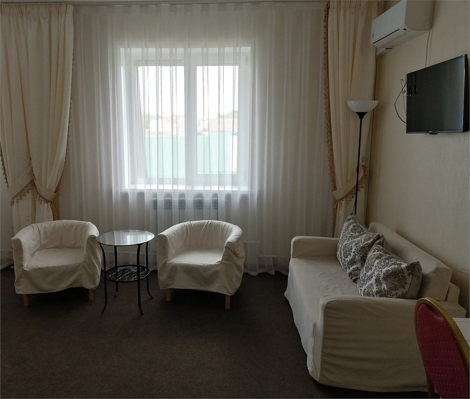 Номер "Джуниор сюит" с джакузи: это просторный номер площадью 40 кв. м. с одной большой кроватью (180*200). В номере - рабочая зона с письменным столом, телефон, плазменный телевизор, холодильник-мини-бар, душ, кондиционер, диван, косметические принадлежности, халат. Номер "Джуниор сюит" с подиумом: это комфортабельный номер площадью 40 кв. м. с подиумом (спальное место 180*200). В номере есть рабочая зона с письменным столом, телефон, плазменный телевизор, холодильник-мини-бар, душ, сплит-система, диван, косметические принадлежности, халат.Услуги и удобства