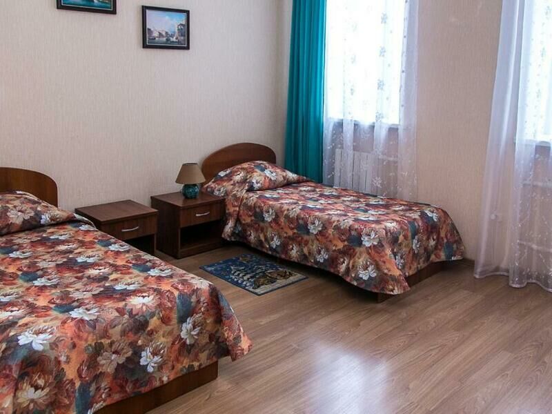 Двухэтажное здание отеля, выстроенное в середине XX века, расположилось на пересечении улицы Металлистов и улицы Калнина. Жилой фонд небольшой и рассчитан на единовременное заселение 39 гостей. Отдыхающих ожидают номера категории Бюджет, Стандарт, Комфорт и Люкс. Во всех комнатах есть собственный санузел, телевизор, беспроводной интернет. Номера улучшенной категории оснащены и другой бытовой техникой — имеются кондиционеры, холодильники и фены.
