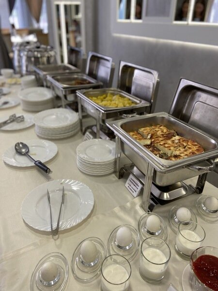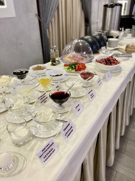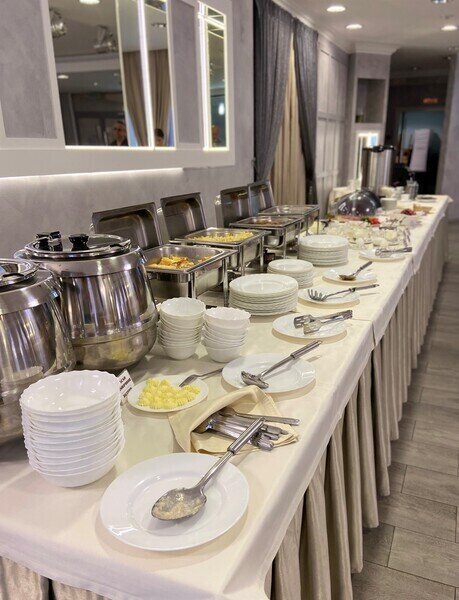 Предоставляется 4 вида салатов и 4 вида горячих блюд на выбор. Заказ необходимо сделать не позднее 21:30. При позднем заселении укажите планируемое время приезда в комментариях к бронированию — ресепшен свяжется с Вами и примет предварительный заказ.