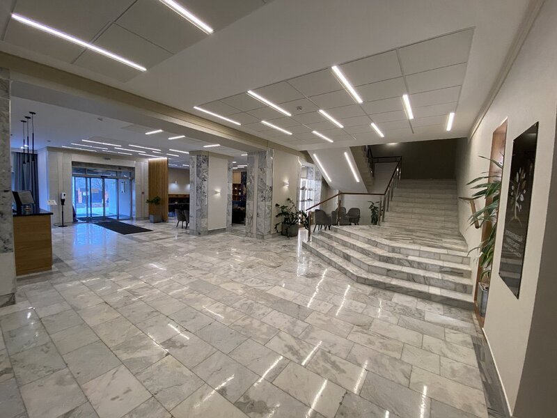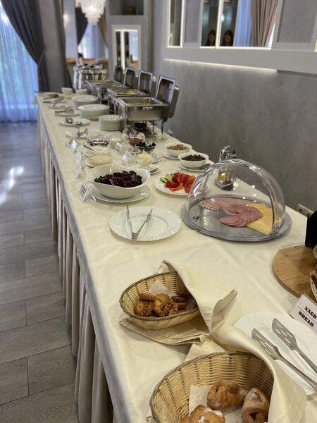 Каждое утро с 07:00 до 11:00 подается завтрак в ресторане «Октябрьский». В ассортименте представлены холодные и горячие закуски, сыры, колбасы, горячие блюда, напитки, выпечка собственного производства. Также вы можете забрать завтрак с собой в ланч-боксе (в случае раннего выезда).