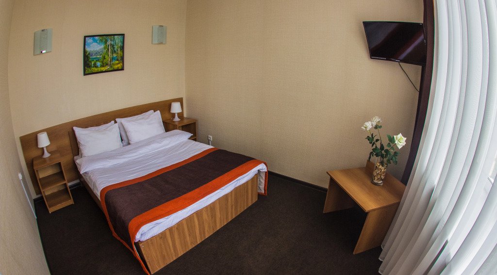 Площадь стандартного номера — 26.0 кв.м. В номере гостей будут ждать душ, телевизор, халат и тапочки. Оснащение зависит от выбранной категории номера.