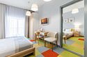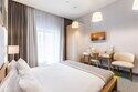Двухместный номер увеличенной площади с 1 кроватью и обеденной группой, размещение 1-2 гостя. В номере: сейф, мини-бар, кабельное телевидение, кондиционер, фен, бутилированная вода в день заезда, чайный и кофейный наборы, полотенца, махровый халат, одноразовые тапочки, предметы гигиены, беспроводной интернет.