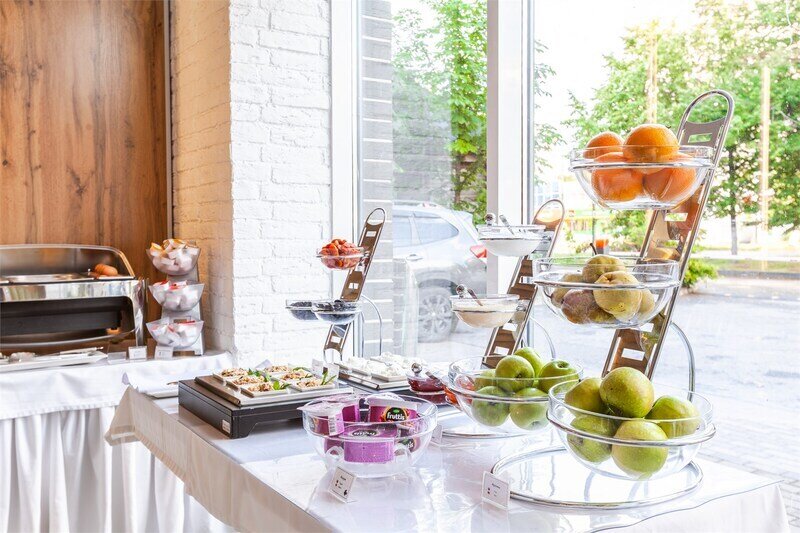 В отдельной зоне конференц-зала или ресторане отеля доступна организация кофейных пауз, бизнес ланча или фуршета. В зависимости от пожелания заказчика меню может быть сервировано в формате шведской линии или индивидуальной подачи.
