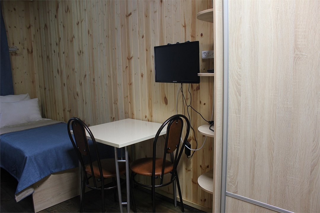 В номере: телевизор, холодильник, СВЧ печь, чайник, санузел с душевой кабиной.