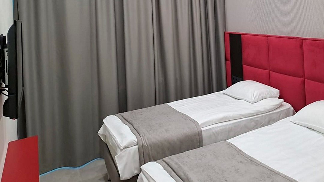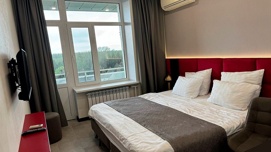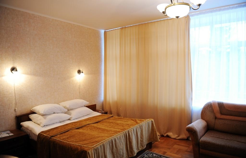 Спальный корпус на 8 этажей рассчитан на 465 человек. Он соединен крытым переходом с лечебным корпусом, столовой, питьевой галереей и администрацией. Есть 7 коттеджей на 48 мест. Гостям предлагают номера разной комфортности.