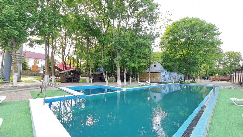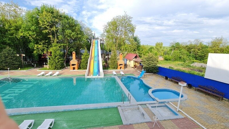 К вашим услугам на территории уютные беседки с мангалами, бесплатная парковка, детская площадка для юных гостей. А также четыре бассейна с термальной водой и аквагоркой.