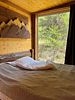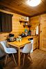 При заселении вас ждет не только просторная двуспальная кровать, но и терраса с удобными креслами, где можно расслабиться и насладиться свежим горным воздухом. Гриль-зона позволит вам приготовить любимые блюда под открытым небом, а деревянная купель на дровах станет идеальным местом для отдыха и восстановления сил после активного дня. Звуки леса и чистота природы создадут атмосферу полного уединения и спокойствия.