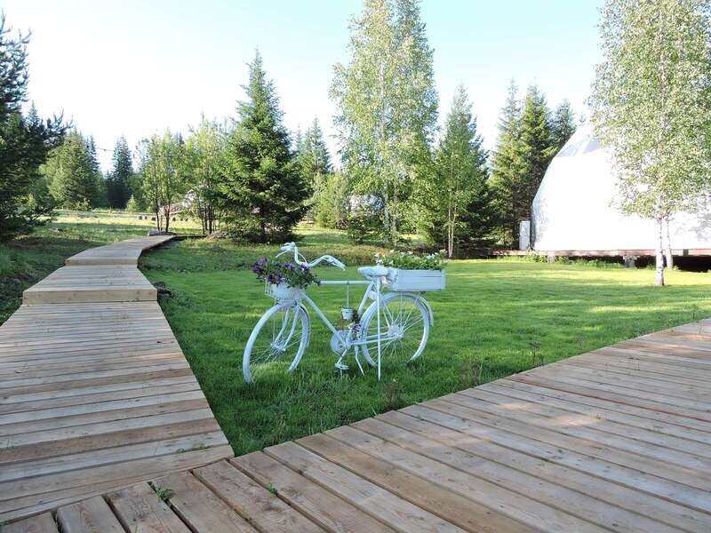 Глэмпинг задумывался как место тишины, где можно отдохнуть в гармонии с природой: насладиться чистым воздухом, светом звёзд, возвышающимися горами, лесом и пением птиц. Дома же хорошо отоплены, с уютом обставлены и оборудованы всем необходимым для комфортного проживания.