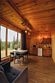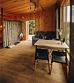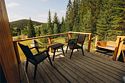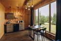 Шатер с обеденной зоной перед панорамным окном, с собственным чаном и баней на террасе.