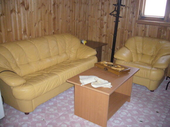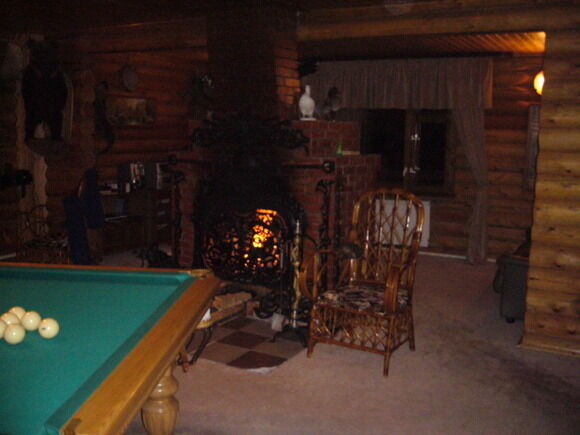 Это большой коттедж на 18 человек. Вы можете снять как весь коттедж целиком, там и отдельный номер. Атмосферу уюта в доме создают мебель из натурального дерева и кованые украшения камина, нарядные скатерти и мягкие ковры, качественное постельное белье и махровые полотенца. Чучела и шкуры диких животных создают незабываемый эффект. На первом этаже: четыре гостевые комнаты, столовая с камином, бильярд, ванная комната с современной сантехникой и необходимыми аксессуарами (душевая кабина, фен), удобная кухня с электрической плитой, электрическим чайником, холодильником, микроволновой и хлебопечью.