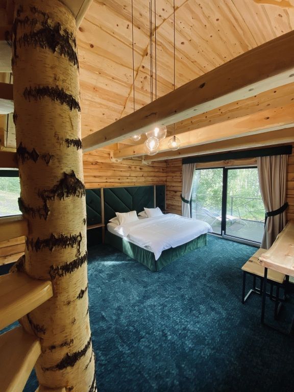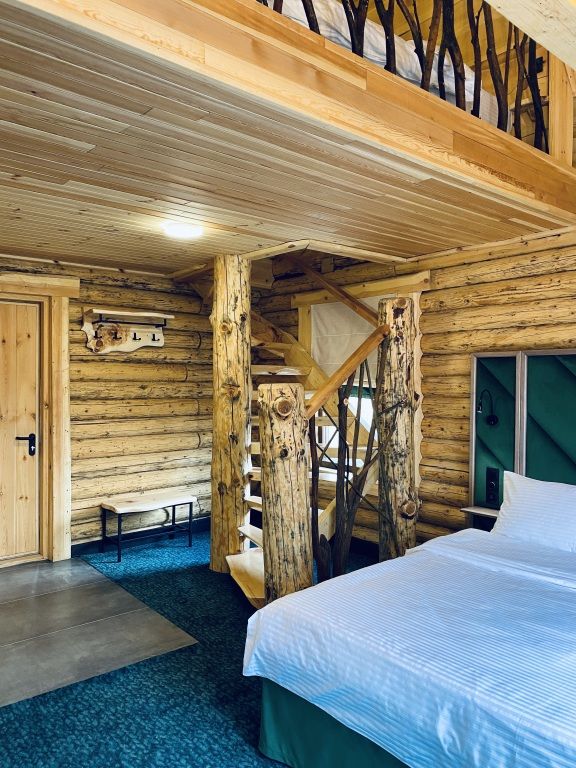 Двухэтажная вилла категории люкс улучшенный – идеальное место для отдыха и восстановления сил в горах Алтая. На первом этаже располагается зона спальни, душевая и выход на личную террасу, где можно проводить вечера в кругу близких и наслаждаться неповторимым видом на парк маралов. Второй этаж включает великолепную мастер-спальню, которая станет вашим приватным оазисом умиротворения. Элегантная мебель, мягкие текстуры и завораживающий вид создают атмосферу уюта. Каждая деталь виллы продумана с любовью к природе и комфорту: кедровые стены создают неповторимый аромат, видовая терраса позволяет наблюдать за величественными маралами в любое время суток, погружаясь в единение с природой. Всем гостям предоставляется услуга персонального батлера, который будет на связи в круглосуточном режиме и выполнит любые просьбы.