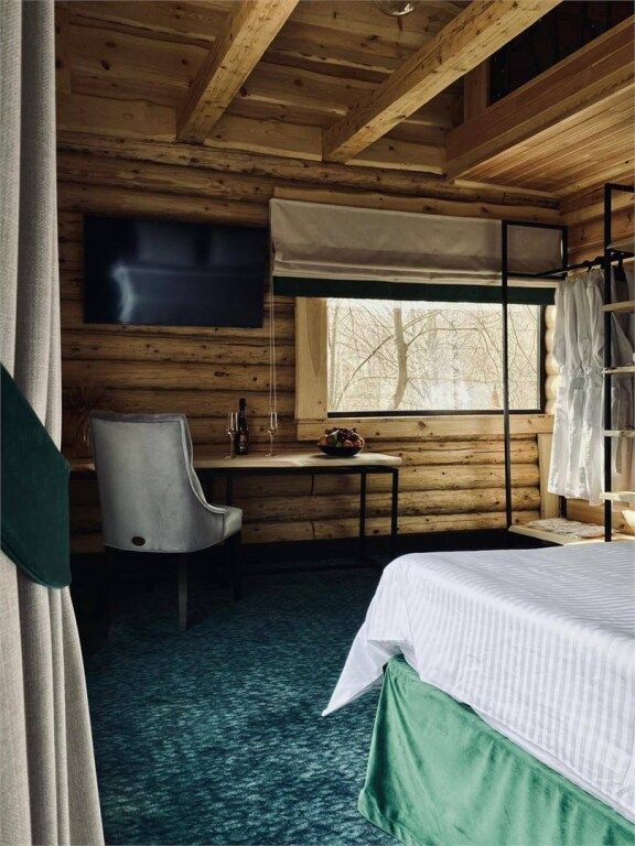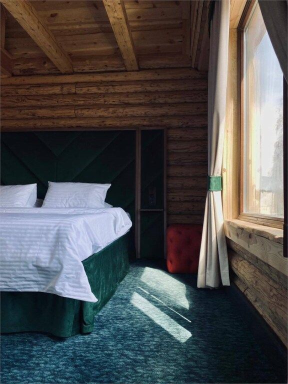 Просторное и стильное шале с панорамными окнами подарит завораживающий вид на парк маралов и горы Алтая. В шале есть все для качественного отдыха и комфортного сна: две кровати с ортопедическими матрасами, невесомые одеяла, климат-контроль, Smart TV, блэкаут шторы, приглушенный теплый свет, чайная зона и современная ванная комната. Натуральные материалы в интерьере создают уютную и теплую атмосферу, а панорамные окна позволяют наблюдать за величественными маралами в любое время суток, погружаясь в единение с природой. Всем гостям предоставляется услуга персонального батлера, который будет на связи в круглосуточном режиме и выполнит любые просьбы. Идеально для тех, кто ценит гармонию природы и комфорт.