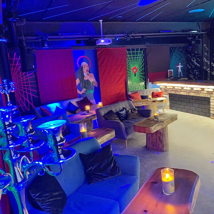 В уютном зале установлено новейшее оборудование с мощными акустическими системами, есть LED-экран и яркая светомузыка. А профессиональные бэк-вокалисты поддержат Вас на сцене и подарят незабываемый опыт караоке!
