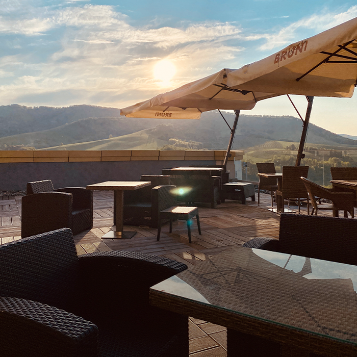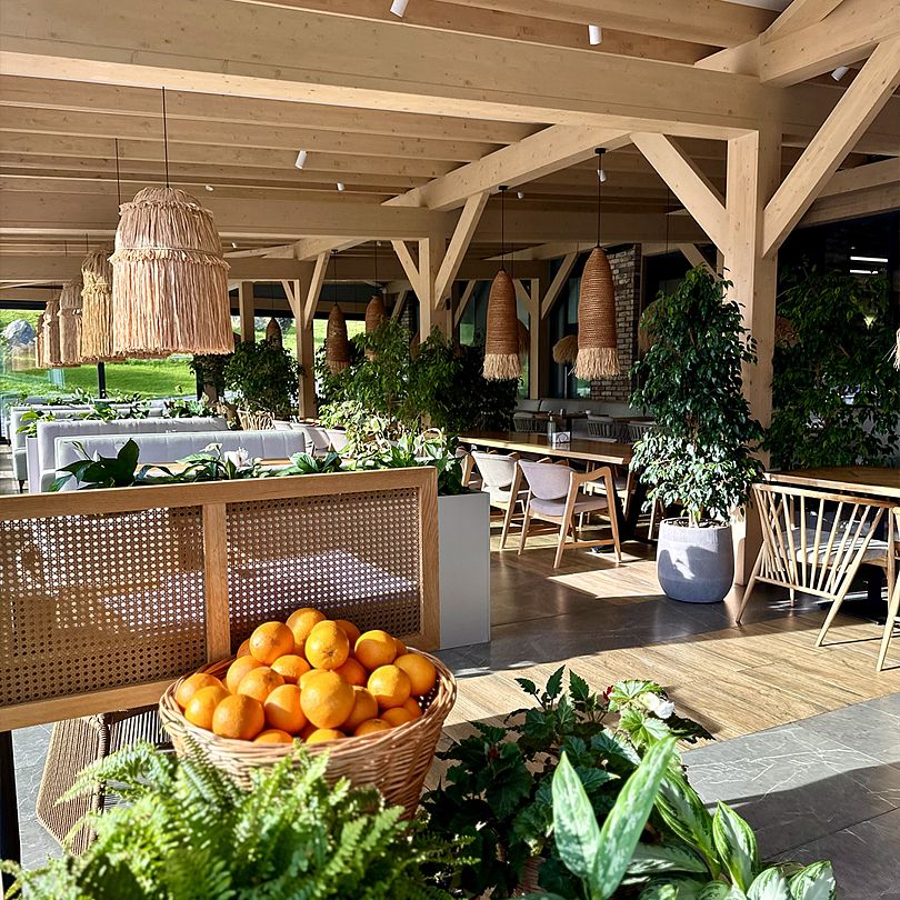 Новая уединенная веранда в светлых тонах и панорамными видами, идеально подойдет для частного события и семейного ужина. Веранда оснащена LED экраном и доступна круглый год.
