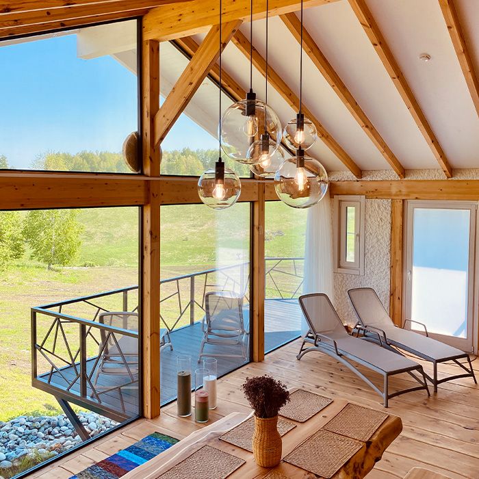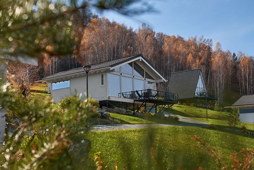 Комфортные шале, выполненные в современном дизайне. Удачное расположение домов дает возможность уединиться и отдохнуть от городской суеты. Панорамные окна - важная особенность, которая подарит чувство спокойствия и умиротворения.