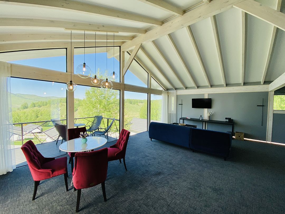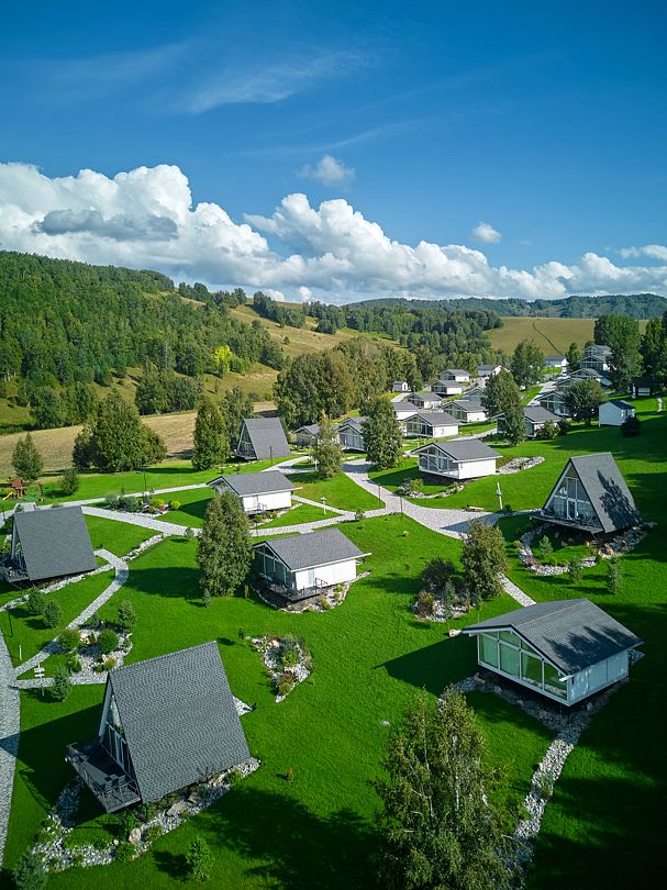 Инфраструктура включает уютные шале, изысканные рестораны и бары, собственный маральник и банный комплекс. Гостей ждёт первый на Алтае открытый круглогодичный бассейн с панорамным видом, детский клуб с профессиональными аниматорами, караоке и бильярд. Ежедневная развлекательная программа и семь уникальных локаций для концертов и праздников создают атмосферу непрерывного праздника.