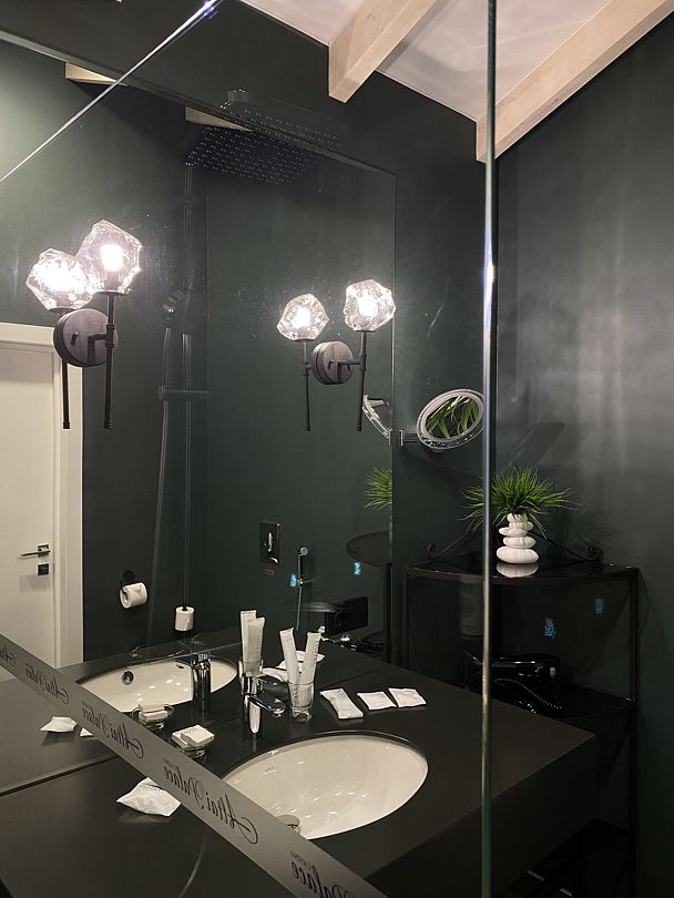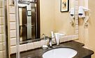 Ванные комнаты оснащены душевыми кабинами, банными халатами, тапочками и индивидуальными косметическими принадлежностями.