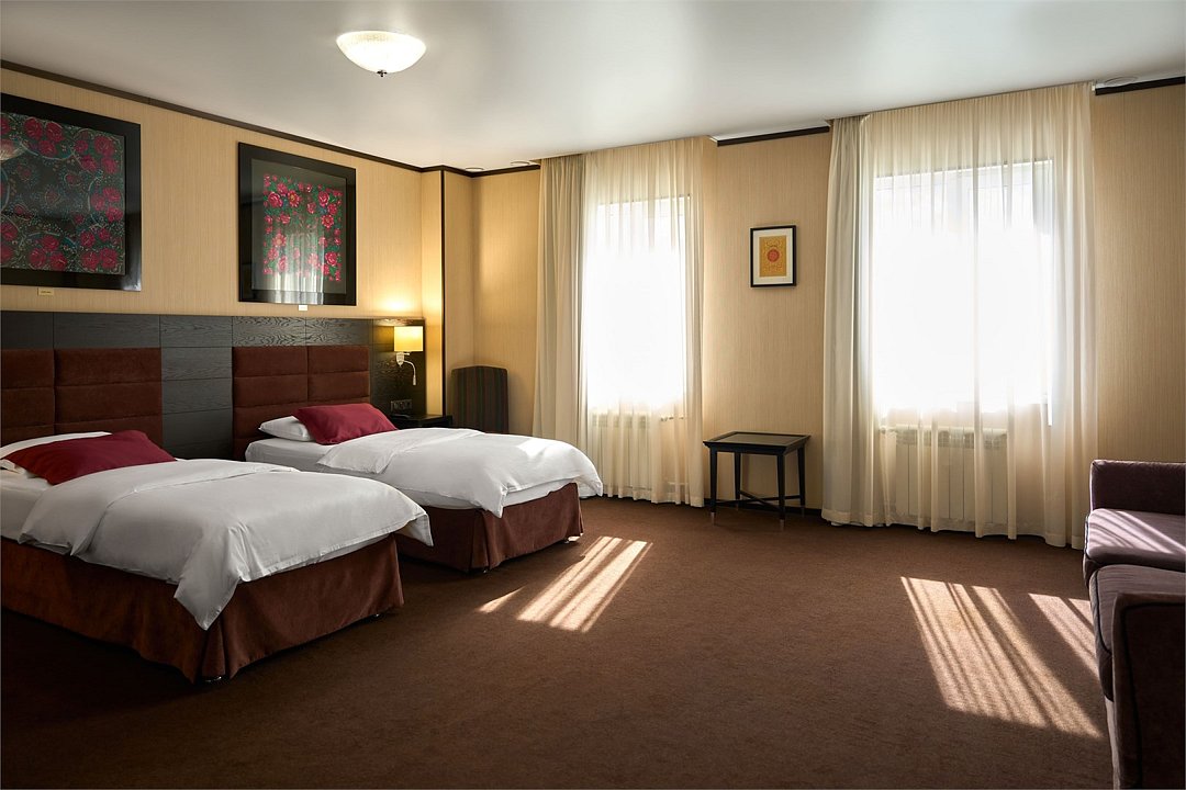 Номер состоит из просторной спальни-гостиной с двумя раздельными кроватями и ванной комнаты. Комфортное размещение до 4 персон.