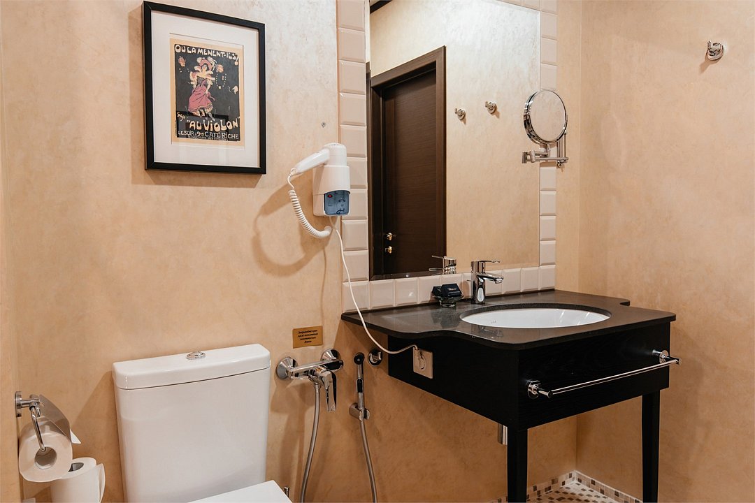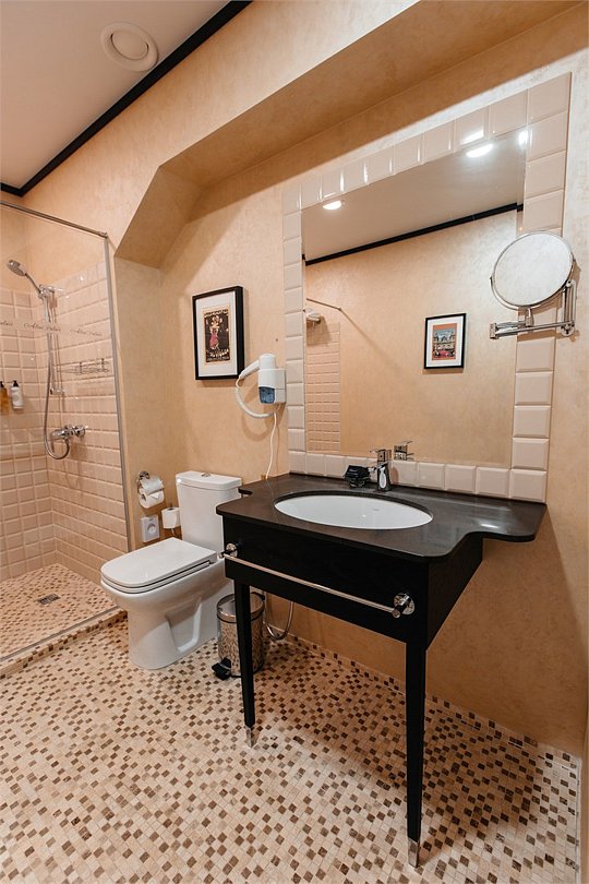 Классический номер с увеличенной площадью для двух персон в главном здании арт-отеля со спальной зоной двумя раздельными кроватями и ванной комнатой.