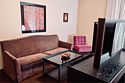 В двух раздельных спальнях расположены большие кровати размера «King size», в гостиной — диван-кровать, кресла, журнальный столик.