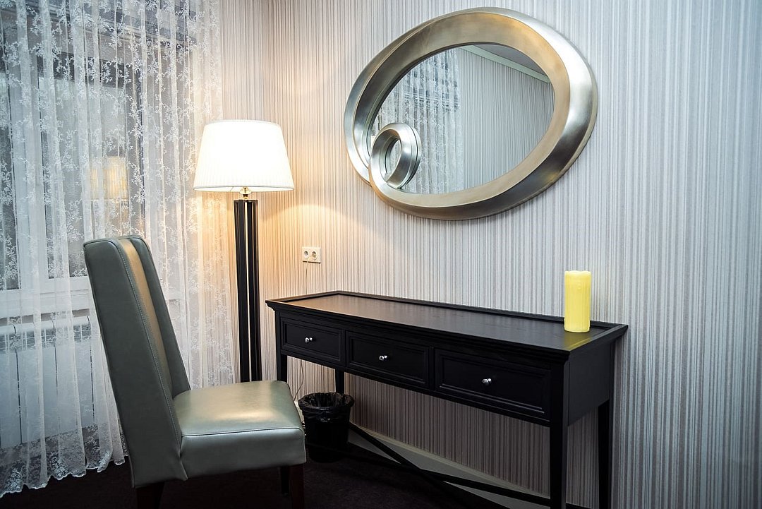 В номере кондиционер, сейф, два телевизора, телефон, Wi-Fi, письменный стол.