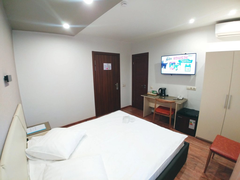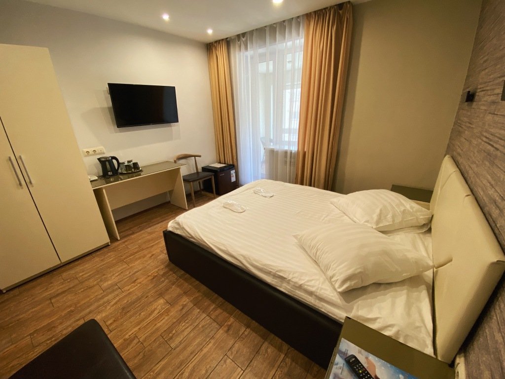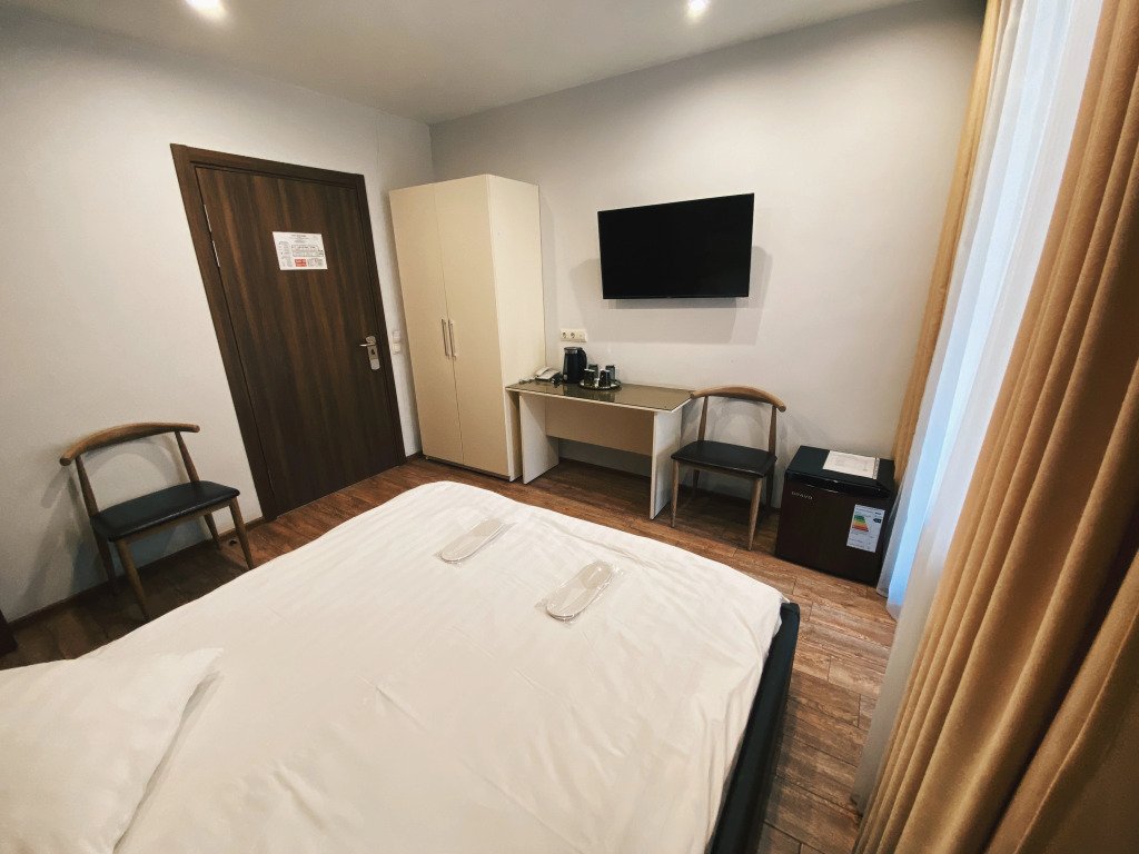 Чтобы вы могли отдохнуть после долгого дня, в номере есть телевизор и халат. Оснащение зависит от выбранной категории номера.