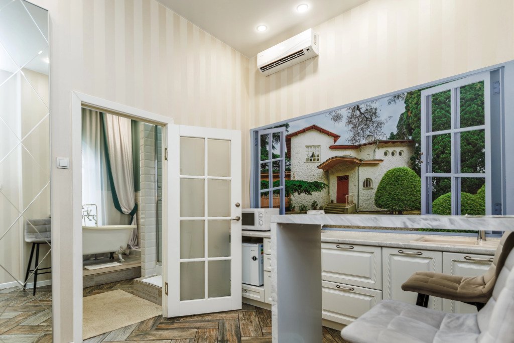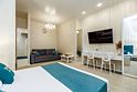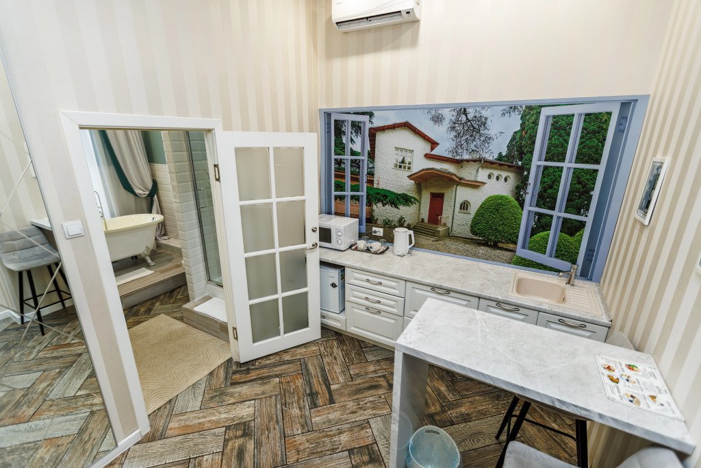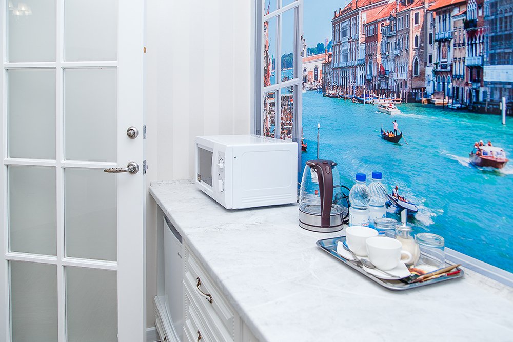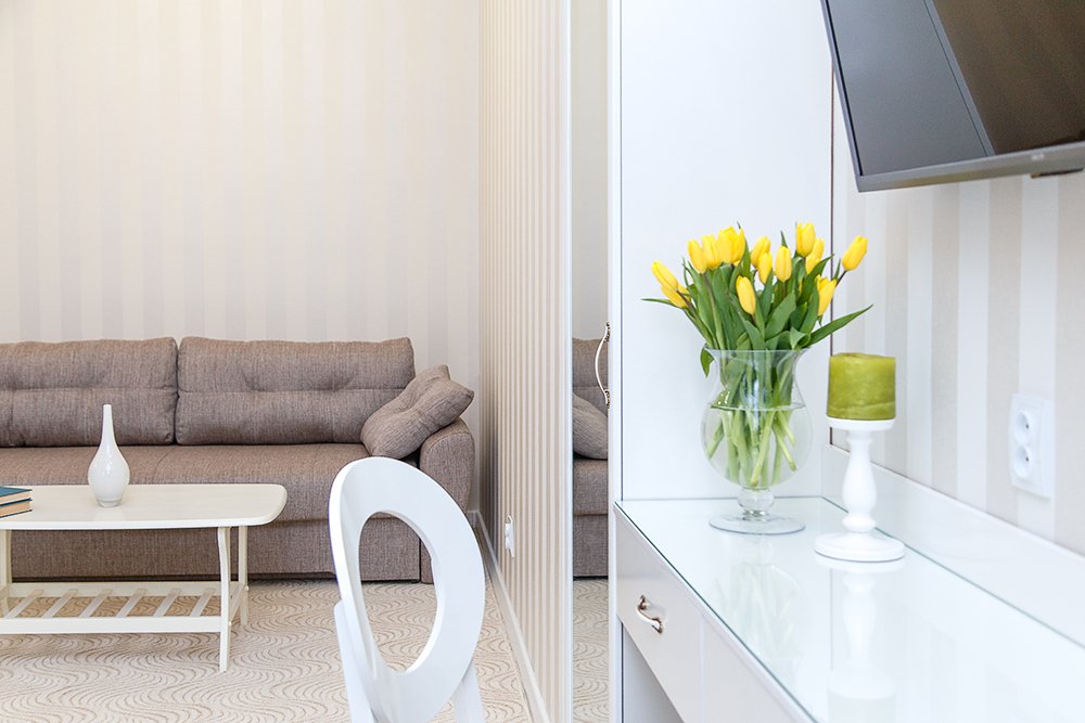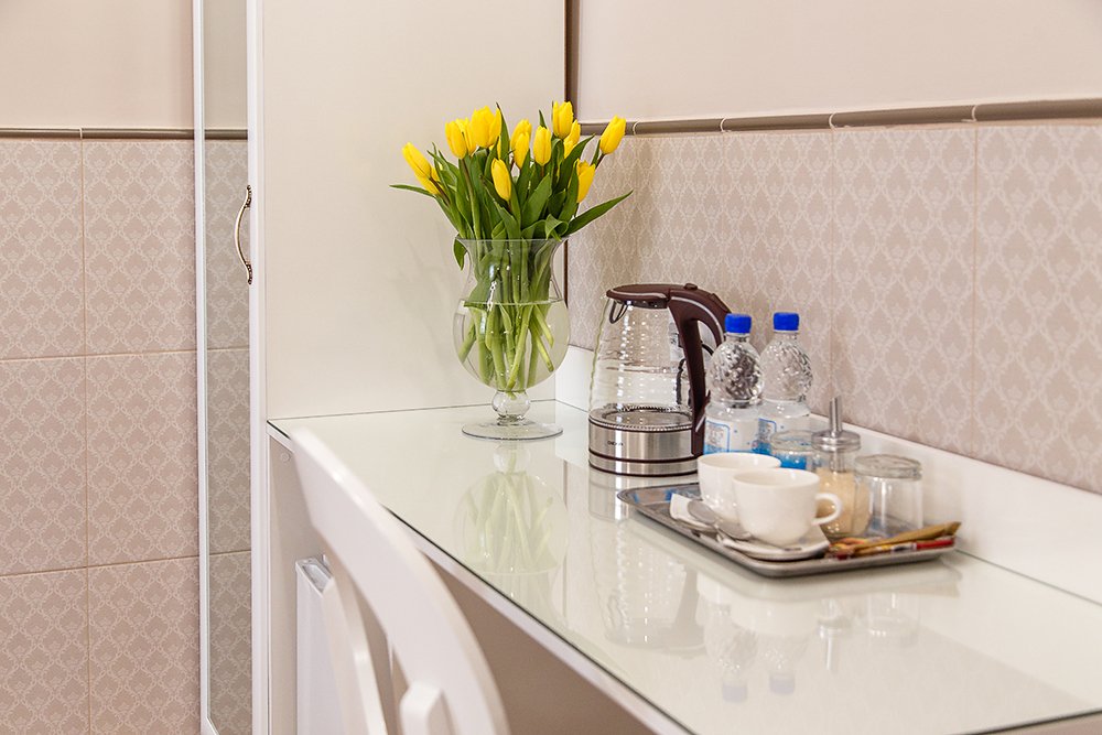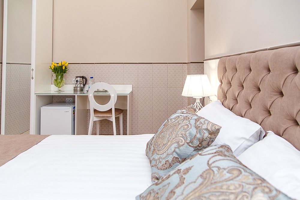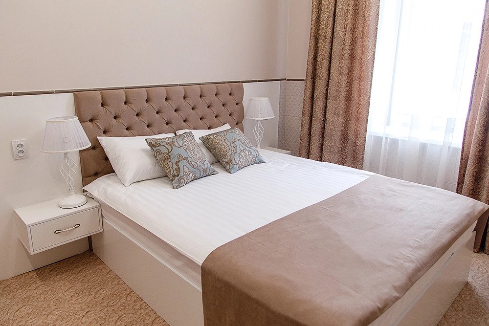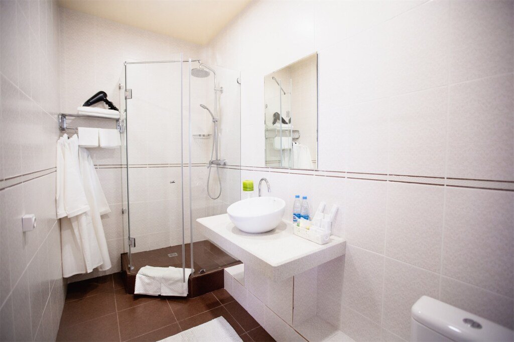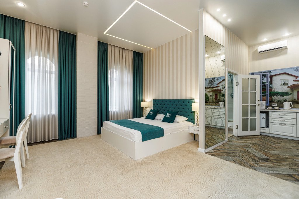 В номере вы найдёте телевизор, мини-бар и халат. Оснащение зависит от выбранной категории номера.