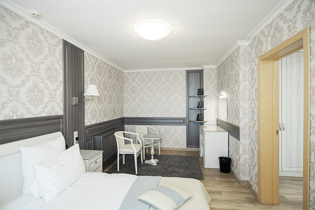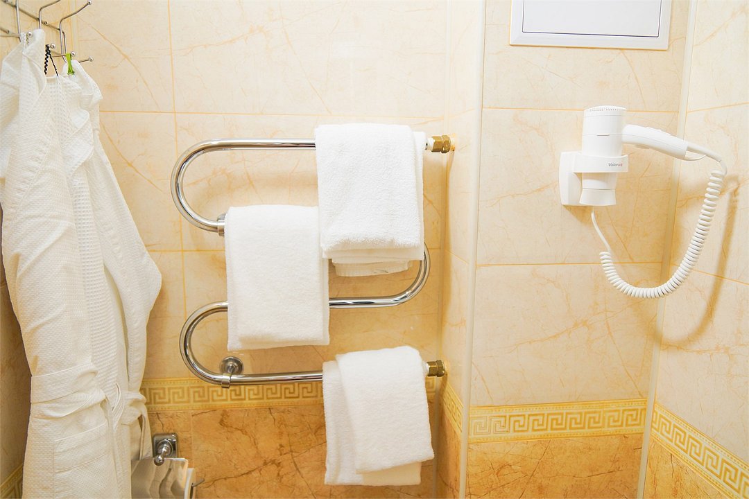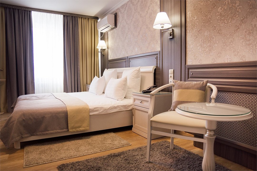 Общая площадь номера составляет - 23 кв. м. Уютный и просторный однокомнатный номер со всеми необходимыми удобствами для размещения одного или двух человек. Номера категории Супериор рассчитаны на проживание тех, кто не привык отказывать себе в комфорте даже в путешествии. В номере одна двуспальная кровать (1,6х2,0 м. или 1,8х2,0 м.), прикроватные тумбы, зона отдыха представленная кофейным столиком и двумя полукреслами, торшер, платяной шкаф, холодильник, электрический чайник, чайные пары, ванная комната с ванной, где по числу гостей имеются – полотенца, халаты, тапочки, набор гигиенических средств; фен. Для хранения ценностей и документов в номере имеется сейф. Так же комфортное размещение гостей обеспечивается доступом к высокоскоростной беспроводной сети Интернет Wi-Fi, плазменным телевизором с цифровыми каналами. Нужный микроклимат помещения создаст кондиционер, установленный в номере. Ежедневно в номере проводится влажная уборка и смена полотенец. Забронируйте номер «Супериор», чтобы чувствовать себя как дома и наслаждаться отдыхом или же с комфортом провести рабочий визит! * Номера данной категории могут отличаться по эстетическому оформлению ** В номере есть возможность организации дополнительного спального места По желанию гостя, в стоимость номера могут быть добавлены завтраки в любом количестве. Стоимость одного завтрака 300 рублей. Парковка на территории гостиницы платная — до 2 часов 50 руб., свыше 2 часов 170 руб./сут. Всего номеров: 6Услуги и удобства