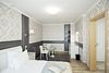Общая площадь номера составляет - 50 кв.м. Номер «Бизнес Люкс» — это рациональная и функциональная организация пространства, которая обеспечит комфорт во время работы, отдыха и приема гостей. Просторный трехкомнатный номер предназначен для пребывания 1 или 2 человек, так же в номере могут разместиться семья с ребенком. В номере имеется все необходимое для проживания, зона отдыха и релакса (гостиная) с удобным мягким кожаным раскладным диваном, широкоэкранным плазменным телевизором подключенным к кабельному телевидению, встроенным мебельным гарнитуром для удобного хранения вещей, а так же напольные весы. Спальная зона с двуспальной кроватью (1,8х2,0 м.) и туалетным столиком, плазменным телевизором с цифровым вещанием. Решать деловые задачи удобно в кабинете, в котором имеется рабочая зона – письменный стол, кресло, моноблок, необходимые письменные принадлежности; в кабинете выделена бытовая зона, где имеется - кофемашина, водоочиститель, микроволновая печь, удобства для приготовления чая и кофе, набор посуды и столовые приборы. В номере собственная ванная комната с ванной, биде, расширенный набор гигиенических средств и другие важные мелочи. Для удобства и комфорта наших гостей в номере есть гладильная доска и утюг. Так же комфортное размещение гостей обеспечивается доступом к высокоскоростной беспроводной сети Интернет Wi-Fi. Нужный микроклимат помещения создаст кондиционер, установленный в номере. Ежедневно в номере проводится влажная уборка и смена полотенец. Номер «Бизнес Люкс» - это сочетание изысканного стиля и высочайшего комфорта! *При регистрации заезда необходимо внести депозит в размере 5000 руб. Депозит возвращается при регистрации отъезда, после проверки состояния номера. ** При проживании в номере категории «Люкс» одно место на автопарковке предоставляется бесплатно (предложение действует при наличии свободных мест) *** В номере есть возможность организации дополнительного спального места Набор услуг в номере, помимо комфортного проживания мы предлагаем так же: * Бутилированную питьевую воду в номере (2 бут. ежедневно) * Два кондиционера с функцией обогрева; * Сейф; * Два широкоформатных плазменных телевизора; * Пресс для брюк; * Три комнаты (гостиная, спальня, кабинет) По желанию гостя, в стоимость номера могут быть добавлены завтраки в любом количестве. Стоимость одного завтрака 300 рублей. Всего номеров: 1Услуги и удобства
