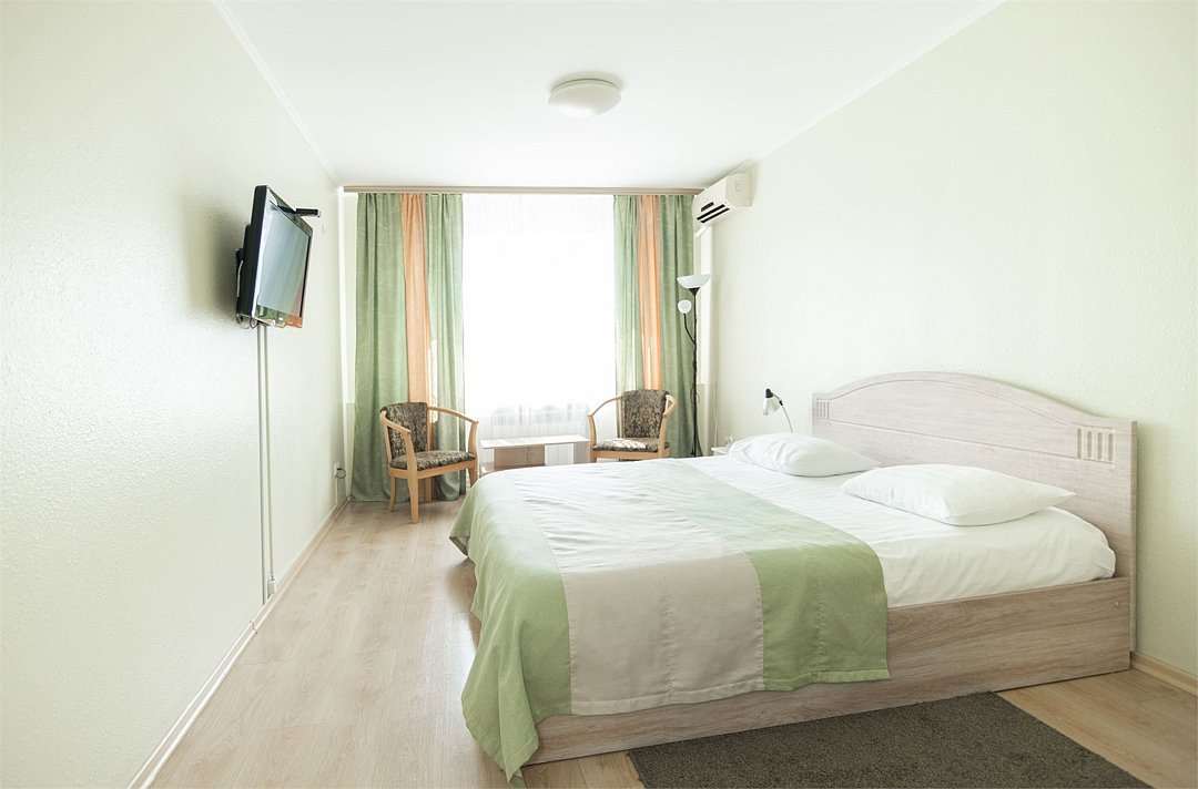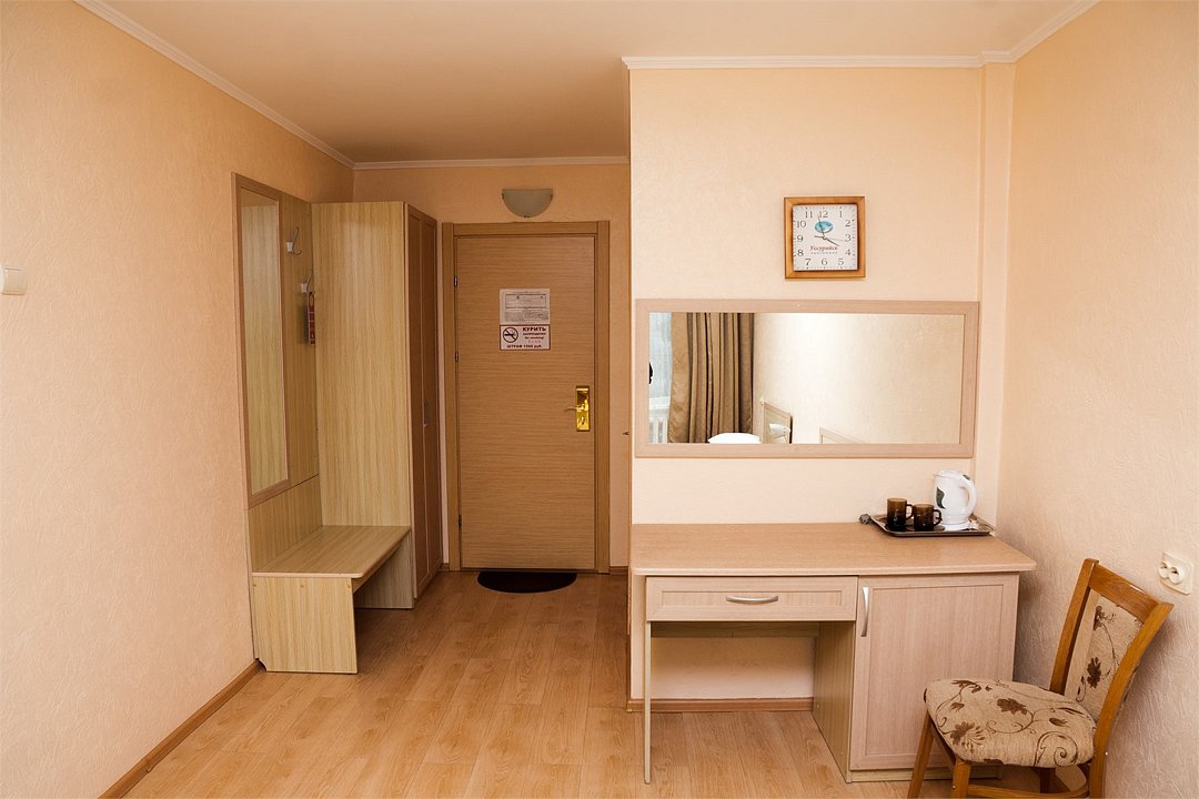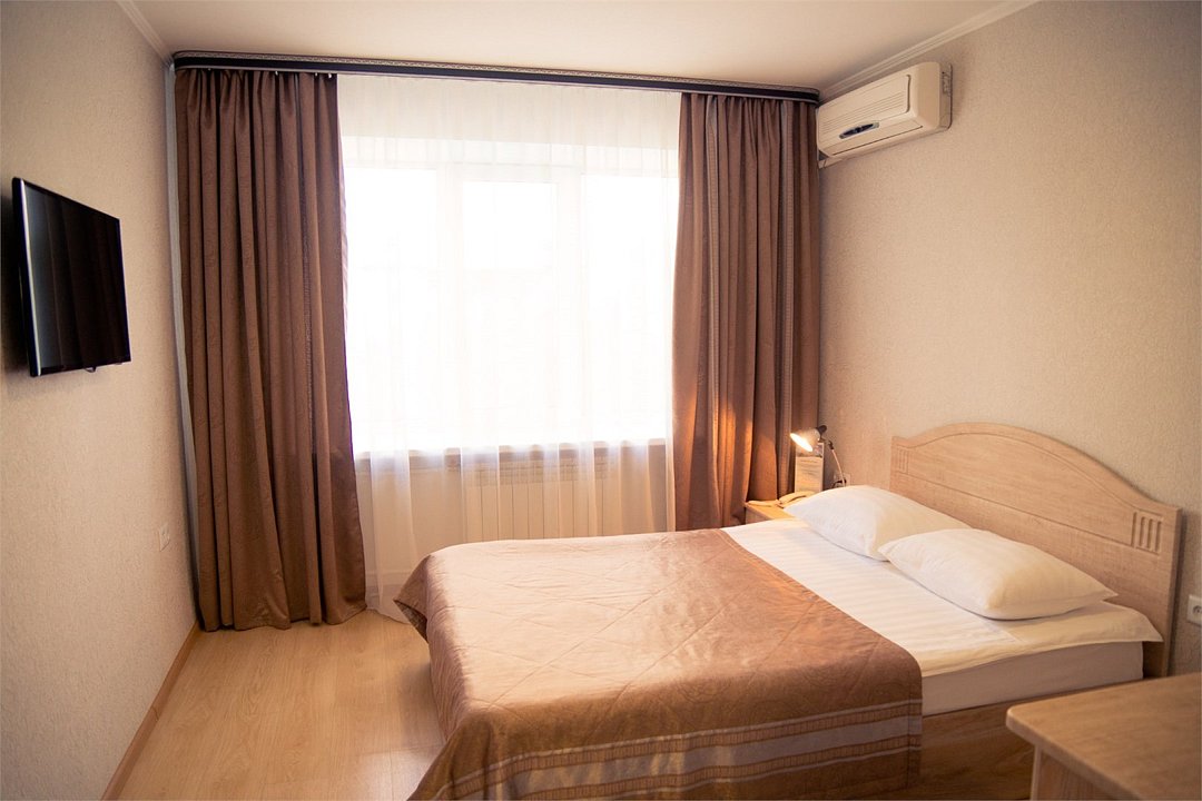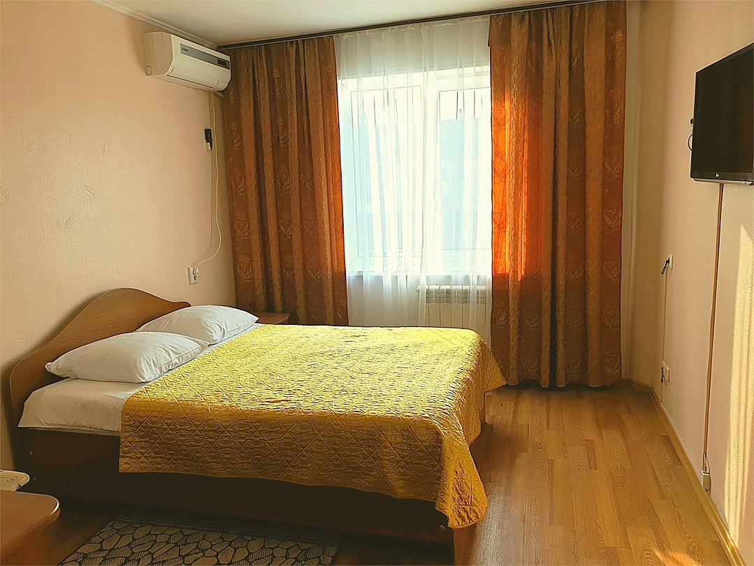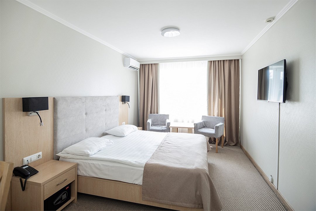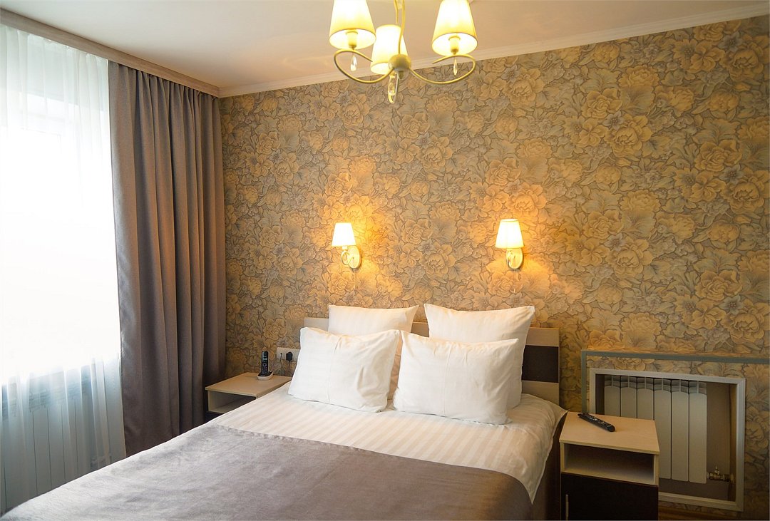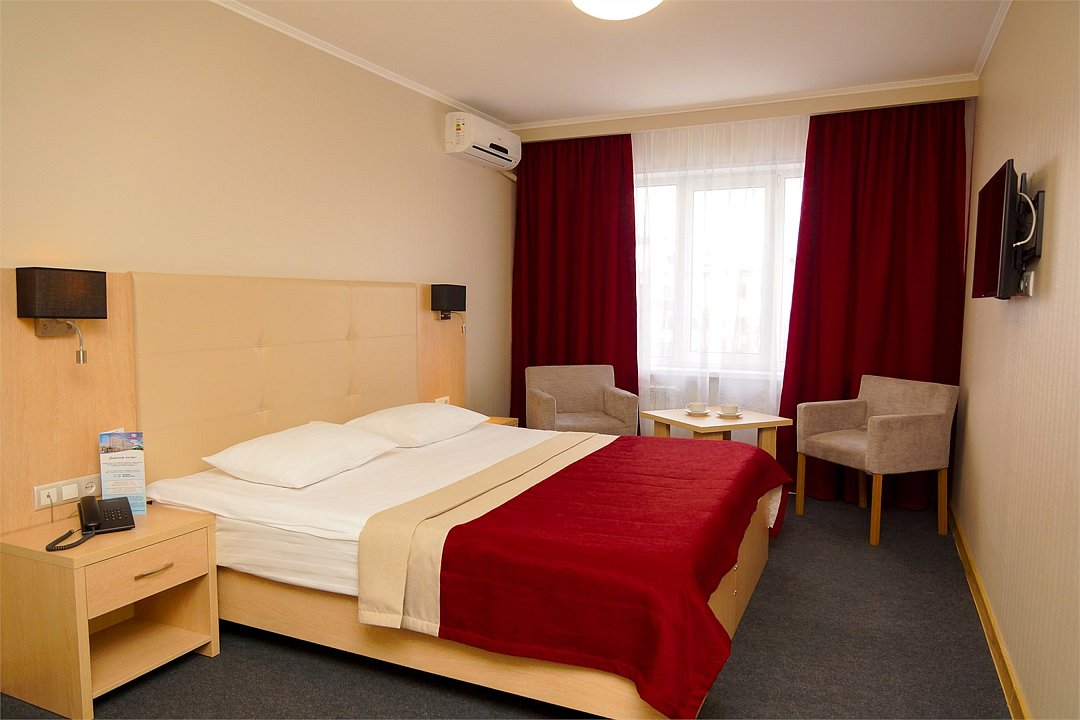 Общая площадь номера составляет - 23 кв.м Двухместные номера стандарт это однокомнатные номера с двумя раздельными кроватями (0,9х2,0 м. или 1,0х2,0 м.), прикроватными тумбами, журнальным столиком, банкетками, холодильником, электрочайником, чайными парами. Номера данной категории подходят для тех, кто путешествует вдвоём и стремится обеспечить комфортное проживание при минимальном бюджете. Номера обеспечивают всё необходимое для длительного проживания и обеспечения рабочих визитов (в некоторых номерах данной категории имеется рабочая зона). Номера оборудованы собственной ванной комнатой с ванной, полотенца, набор гигиенических средств, тапочки. Комфортное размещение гостей обеспечивается доступом к высокоскоростной беспроводной сети Интернет Wi-Fi, плазменным телевизором с цифровыми каналами. Нужный микроклимат помещения создаст кондиционер, установленный в номере. Ежедневно в номере проводится влажная уборка и смена полотенец. * Номера данной категории могут отличаться по эстетическому оформлению ** В номере есть возможность организации дополнительного спального места По желанию гостя, в стоимость номера могут быть добавлены завтраки в любом количестве. Стоимость одного завтрака 300 рублей. Парковка на территории гостиницы платная — до 2 часов 50 руб., свыше 2 часов 170 руб./сут. Всего номеров: 20Услуги и удобства