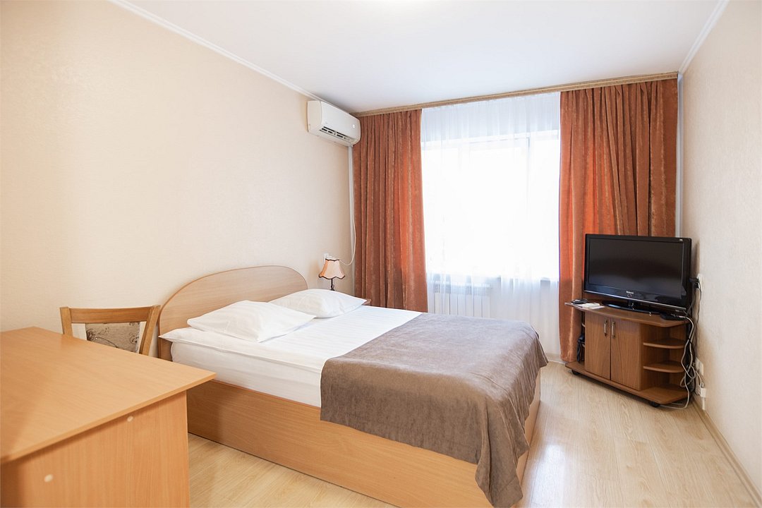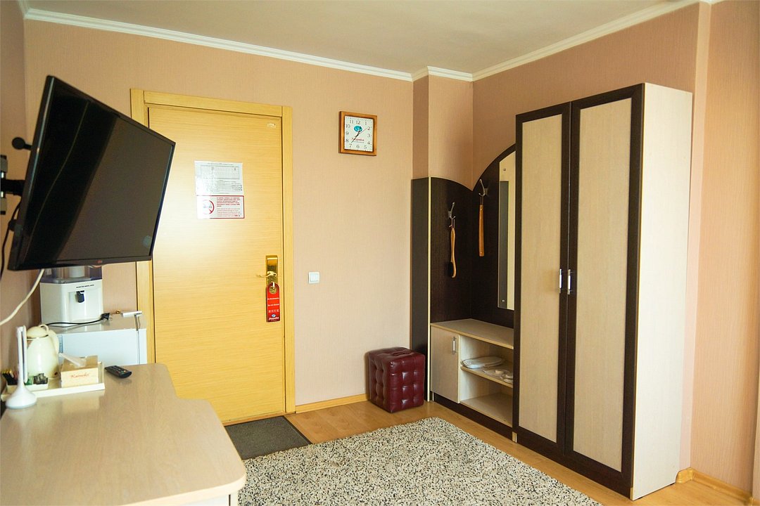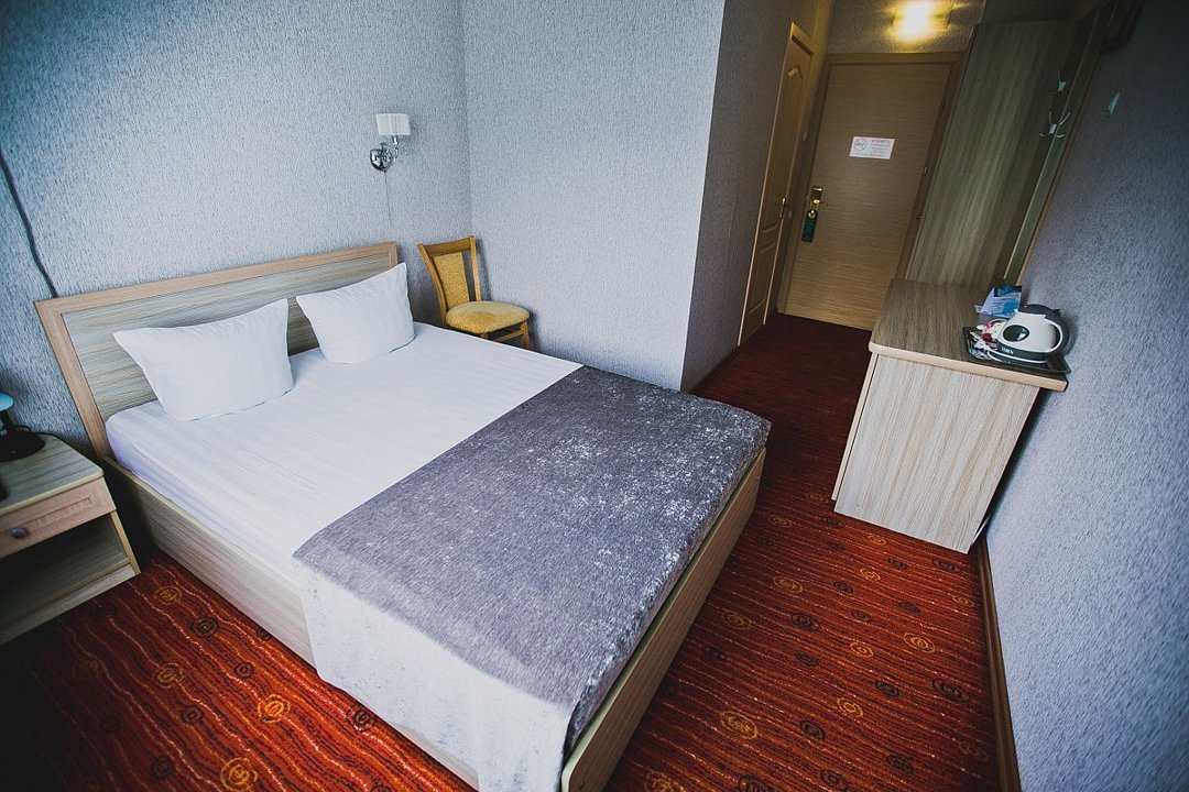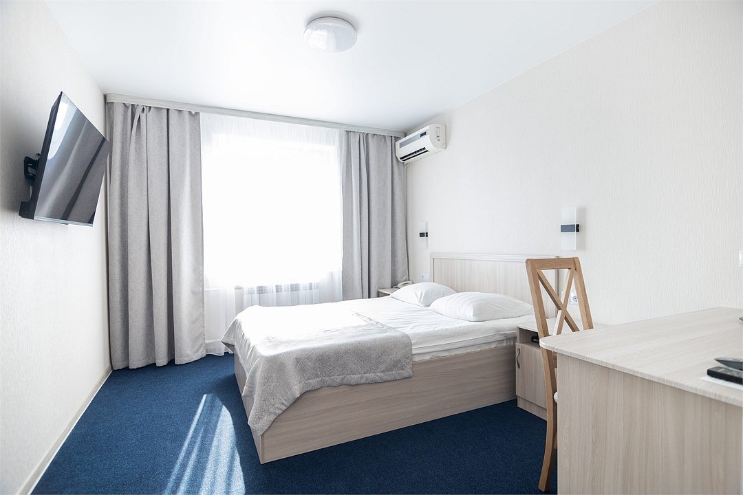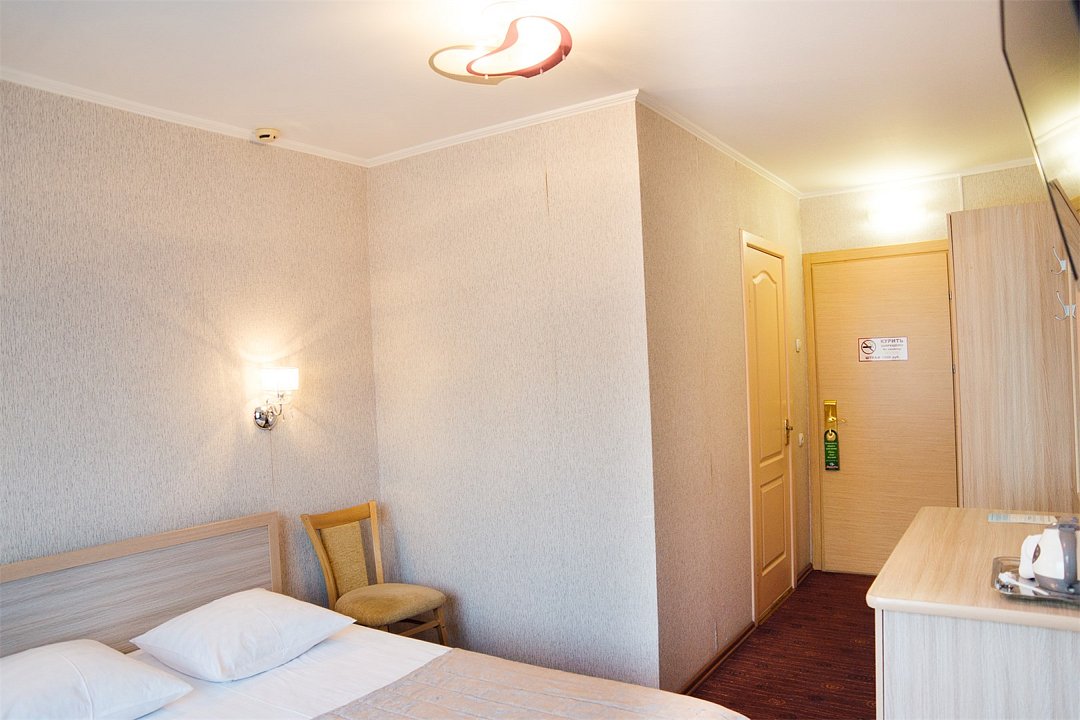 Небольшой уютный номер с полутороспальной кроватью (1,4х2,0 м. или 1,5х2,0 м.) и прикроватной тумбочкой для комфортного одноместного размещения. В номере имеется шкаф для хранения личных вещей, собственная ванная комната с ванной, полотенца, набор необходимых туалетных принадлежностей. Также комфорт гостей обеспечивается доступом к высокоскоростной беспроводной сети Интернет Wi-Fi, плазменным телевизором с цифровыми каналами. Нужный микроклимат помещения создаст кондиционер, установленный в номере. Ежедневно в номере проводится влажная уборка и смена полотенец. * Номера данной категории могут отличаться по эстетическому оформлению Парковка на территории гостиницы платная — до 2 часов 50 руб., свыше 2 часов 170 руб./сут.Услуги и удобства
