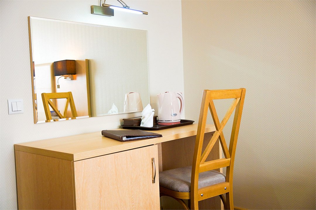 Общая площадь номера составляет – 23 кв. м. Максимальное количество гостей - 2 человека Уютный однокомнатный номер со всем удобствами, включает в себя все необходимое для работы и комфортного отдыха. Идеально подходит для двухместного размещения коллег. По сравнению с Двухместным номером стандарт, Двухместный «Комфорт» является хорошо оборудованным вариантом, с набором услуг соответствующем уровню «Комфорт». Номер оборудован всем необходимым для спокойного отдыха и полноценной работы: двумя односпальными кроватями (1,0х2,0 м. или 1,2х2,0 м.), настенными бра, рабочей зоной, собственной ванной комнатой с ванной или душевой кабиной, халатами и тапочками, набором гигиенических средств, феном. Так же комфортное размещение гостей обеспечивается доступом к высокоскоростной беспроводной сети Интернет Wi-Fi, плазменным телевизором с цифровыми каналами. Нужный микроклимат помещения создаст кондиционер, установленный в номере. Ежедневно в номере проводится влажная уборка и смена полотенец. * Номера данной категории могут отличаться по эстетическому оформлению ** В номере есть возможность организации дополнительного спального места По желанию гостя, в стоимость номера могут быть добавлены завтраки в любом количестве. Стоимость одного завтрака 300 рублей. Парковка на территории гостиницы платная — до 2 часов 50 руб., свыше 2 часов 170 руб./сут. Всего номеров: 10Услуги и удобства