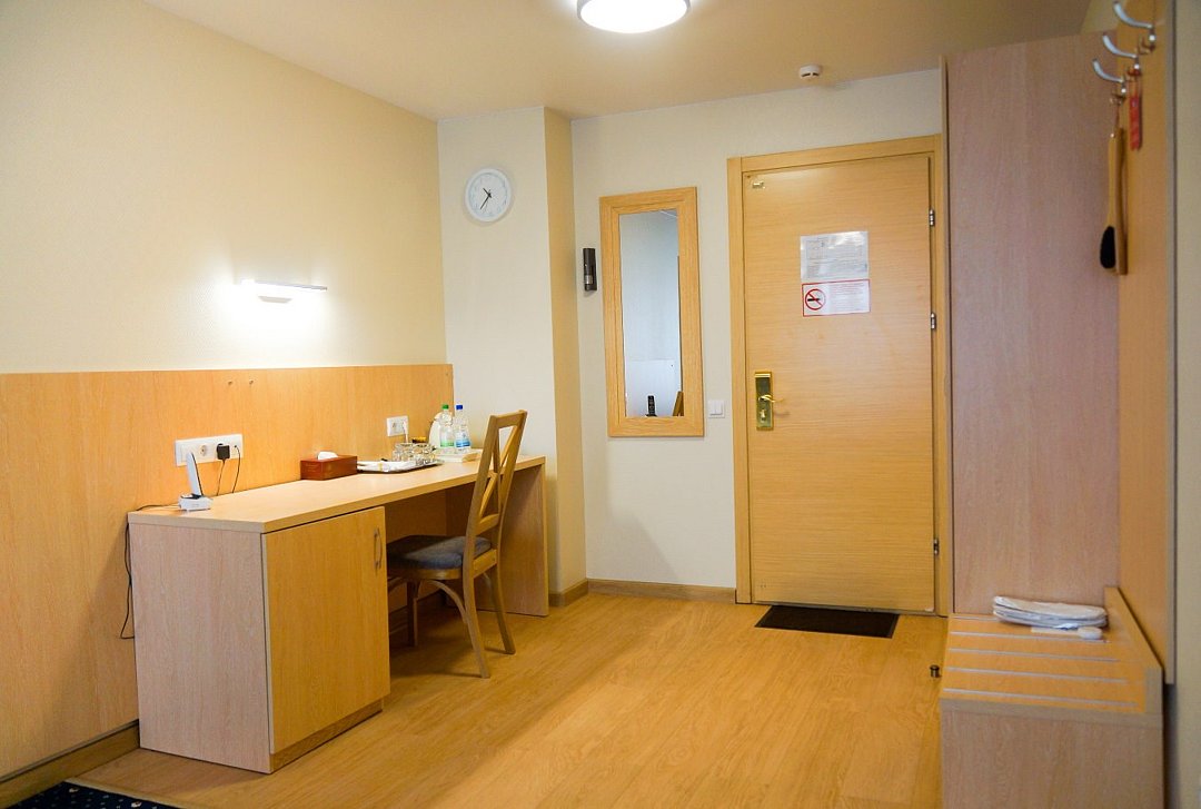 кабельное телевидение, Wi-Fi, телефон, холодильник, кондиционер, настольные лампы, фен, электронные замки, ванная комната, ванна или душевая кабина, халаты, банные полотенца, тапочки, косметические средства, двуспальная кровать, тумбы, стулья, шкаф для одежды, вешалки, письменный стол, зеркало, чайник, унитаз, раковина, отопление, кулер на этаже, столовые приборы, без питомцевВ номере