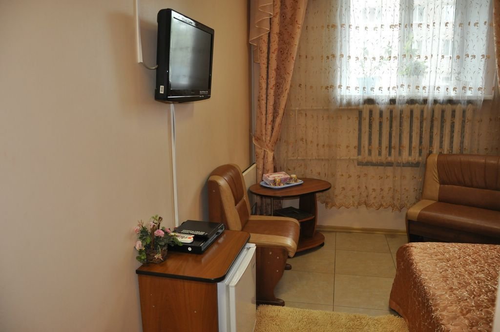 В номере вас будут ждать DVD-плеер, телевизор и халат. Оснащение зависит от выбранной категории номера.