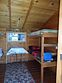 На втором этаже расположены две кровати с возможным совмещением в одну большую, плюс одна кровать автономная. Прямой выход на балкон с видом на березовый лес и горы.