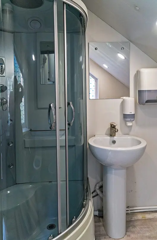 Также на первом этаже расположен сан.узел с душевой комнатой, унитазом, раковиной.