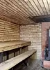Эконом вариант. Блок из деревянных досок с перегородками на комнаты, вход в каждую комнату отдельный. Туалет, умывальник на улице.