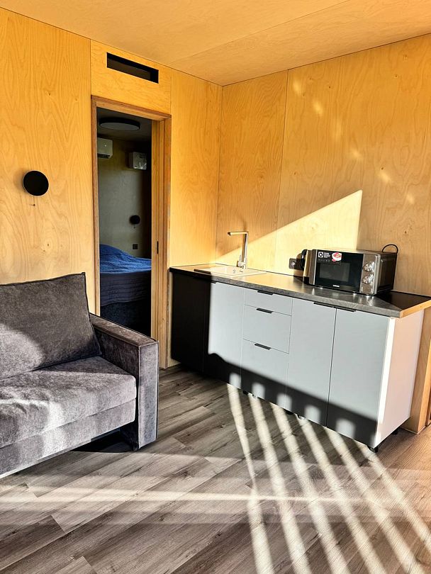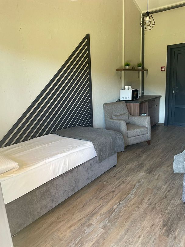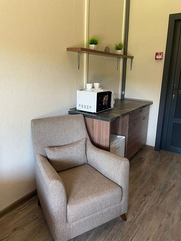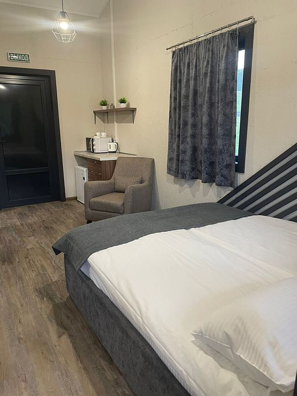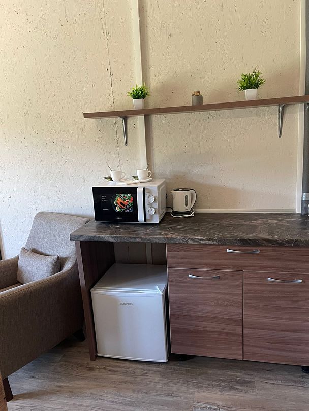 Прекрасный вид на горы и звездное небо. Однокомнатный номер с 1 двуспальной или 2 односпальными кроватями. Подходит для двух или трех гостей. Отдельный вход. В каждом номере есть все необходимое для комфортного проживания: с/у, теплый пол, индивидуальные средства личной гигиены, фен, чайник и чайные принадлежности, холодильник, микроволновая печь.