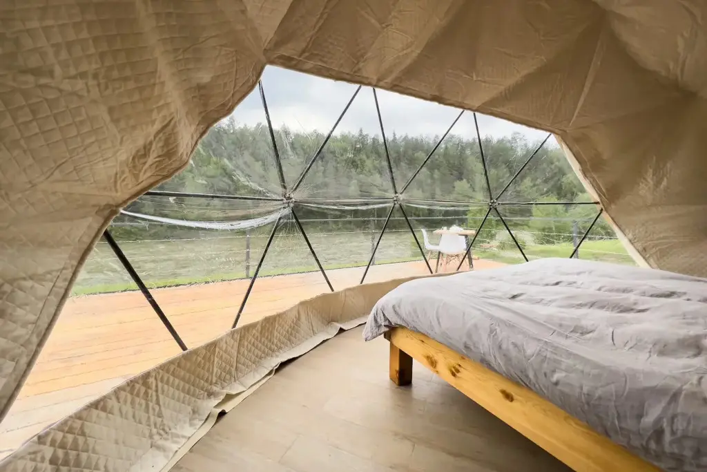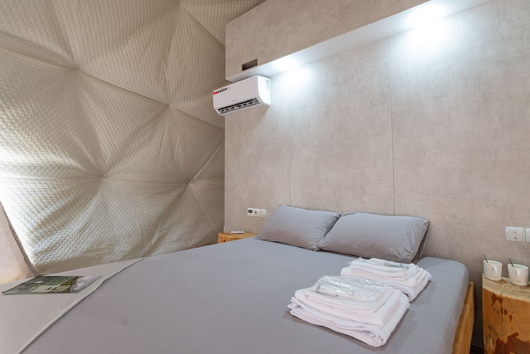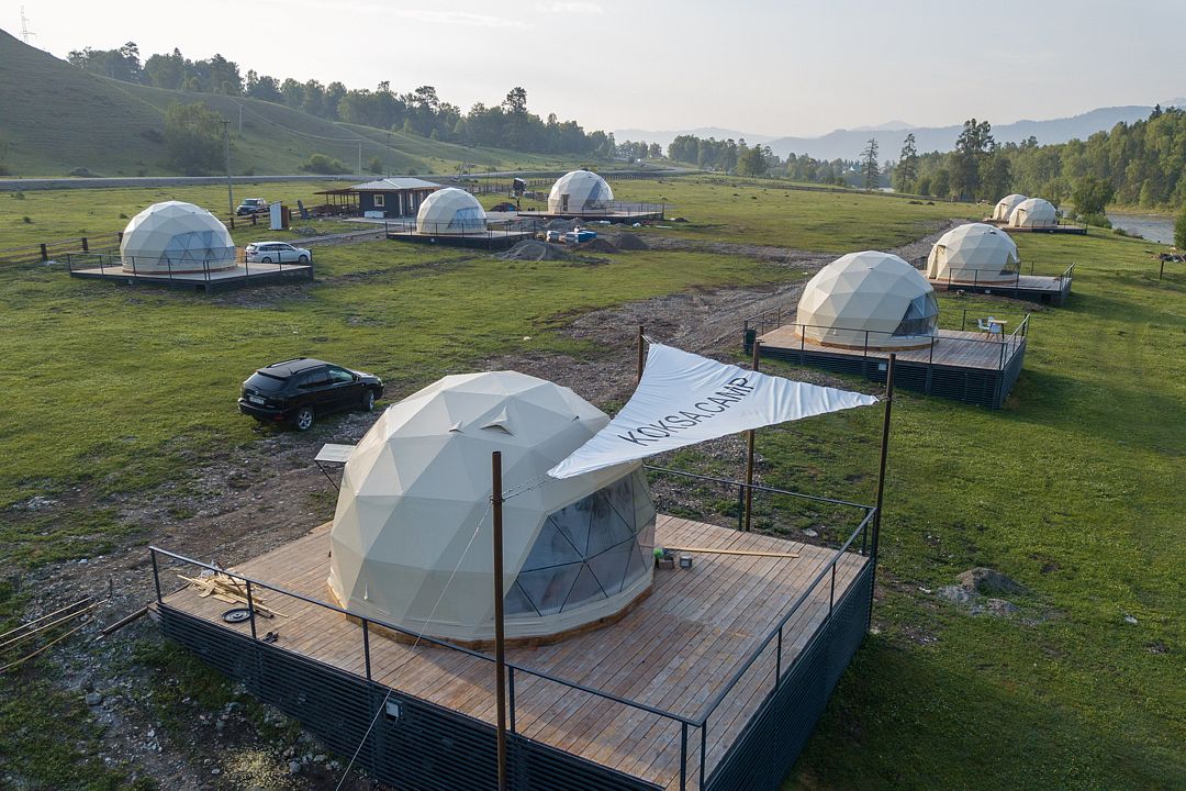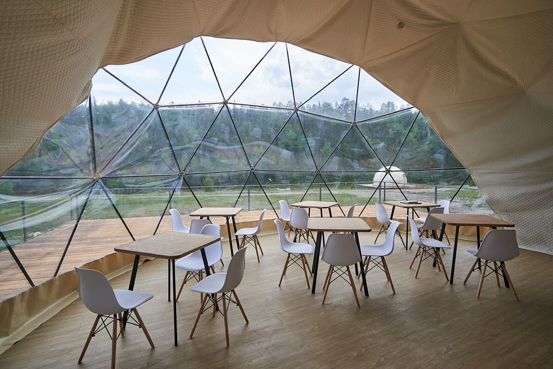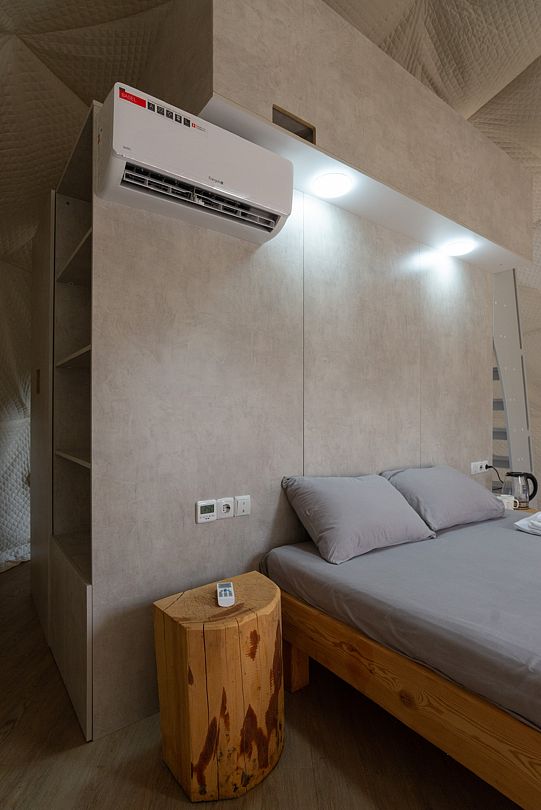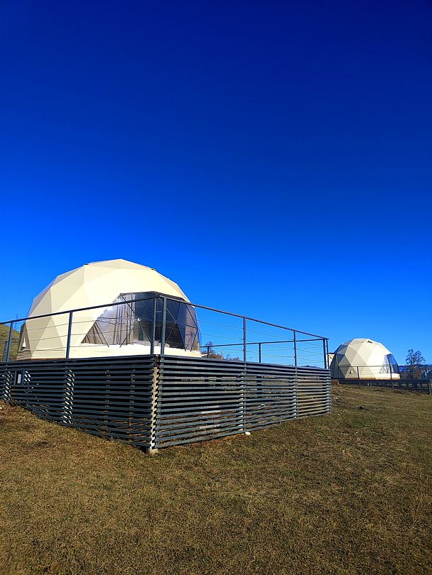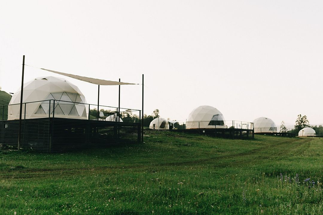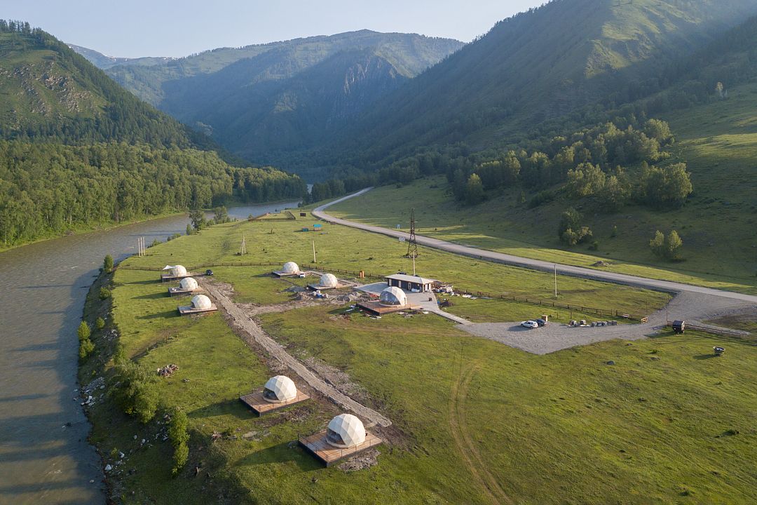 Купольный номер с прекрасным видом на горы, реку и звездное небо. В каждом номере есть всё необходимое для комфортного проживания: две удобных двуспальных кровати, с/у, кондиционер, тёплый пол, белоснежные халаты, индивидуальные средства личной гигиены, чайник и чайные принадлежности.