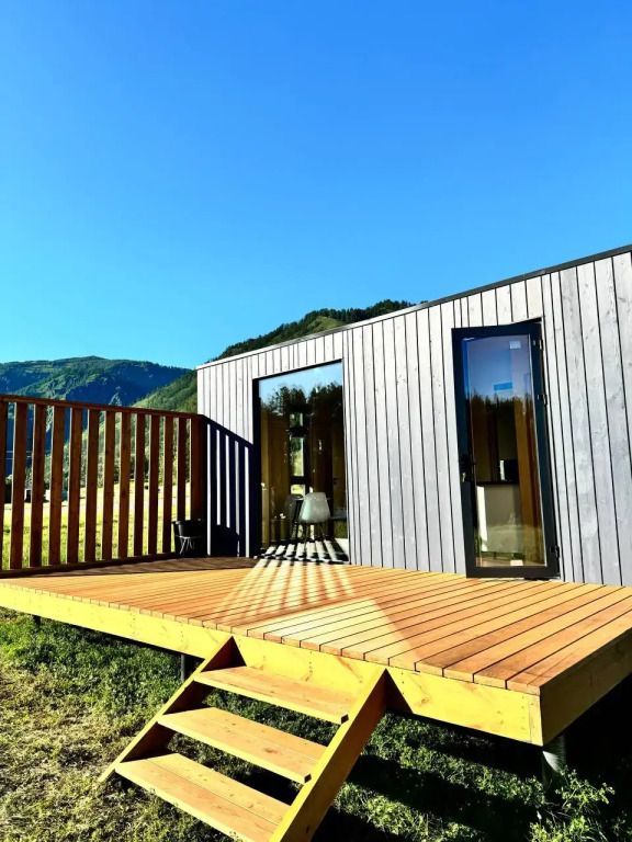 Прекрасный двухкомнатный дом с видом на горы и реку. Всё необходимое для комфортного проживания: Двуспальная кровать, две односпальные кровати, диван, с/у, кондиционер, тёплый пол, индивидуальные средства личной гигиены, белоснежные халаты, мини-кухня, чайник, чайные принадлежности.