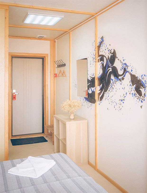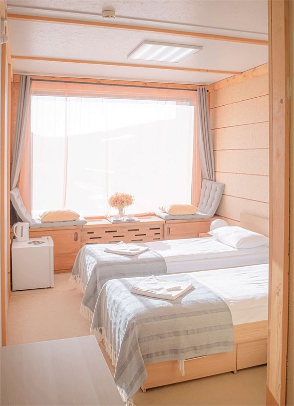 Однокомнатный номер-хостел, 20 кв м, 1 этаж. Два больших окна с видом на территорию базы. Wi-fi.