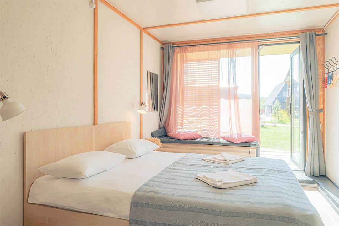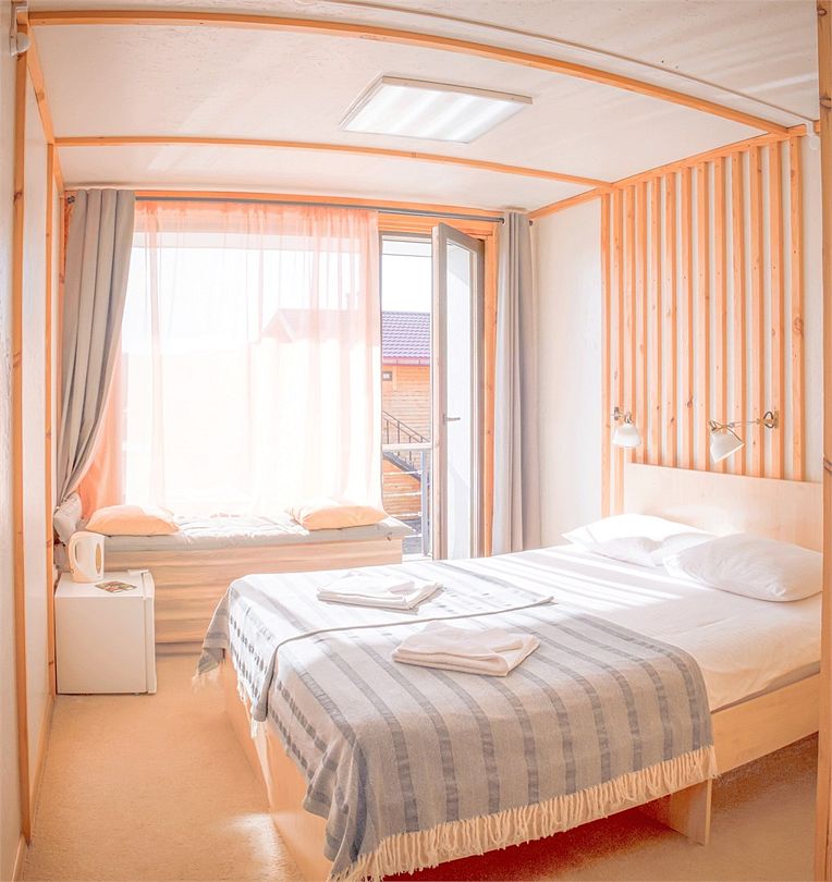 Спальные места: 2 основных (двуспальная кровать или две односпальных). Есть возможность поставить 1 дополнительное место (еврораскладушка).