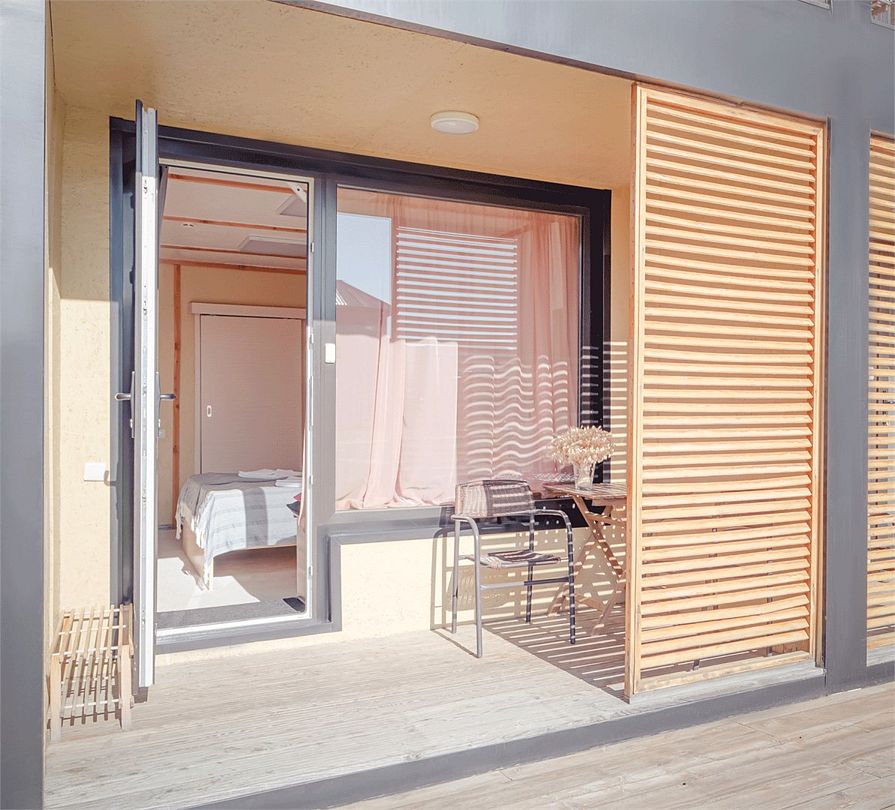 Однокомнатный номер с террасой, 15 кв м, 1 этаж. На террасе столик и стулья. Wi-fi